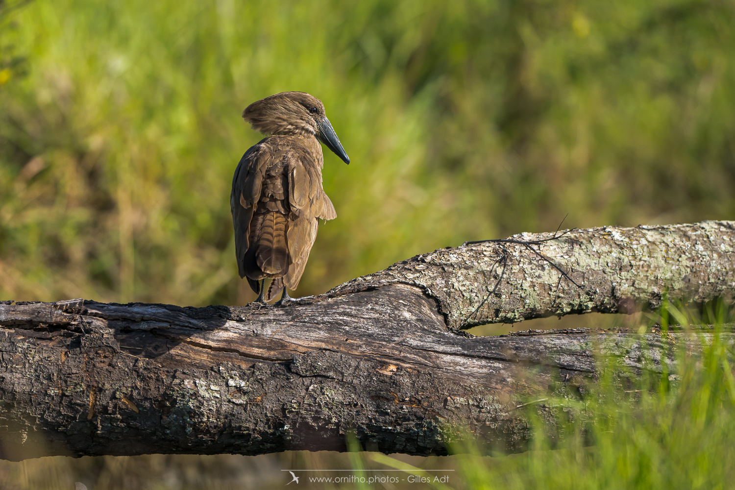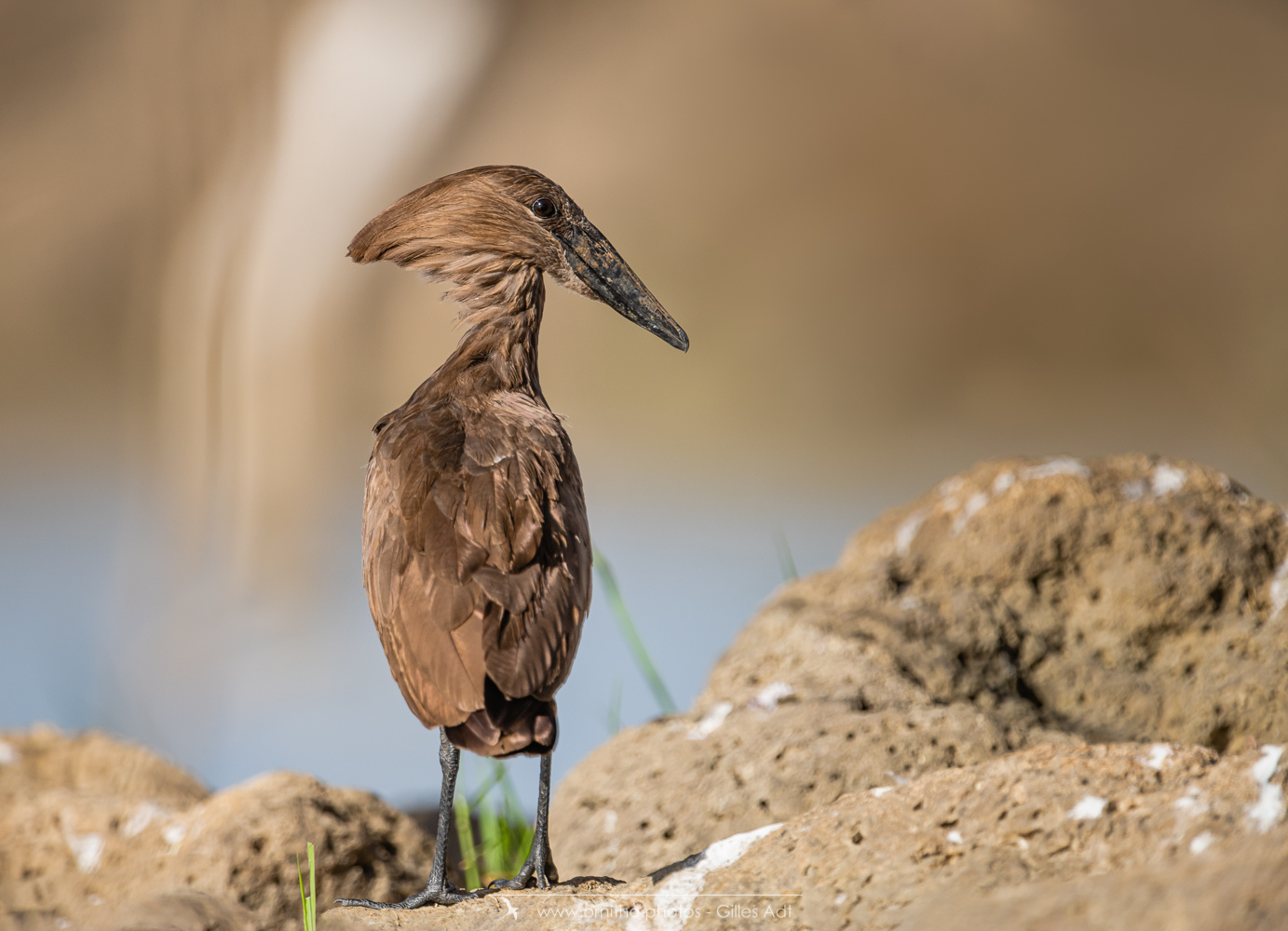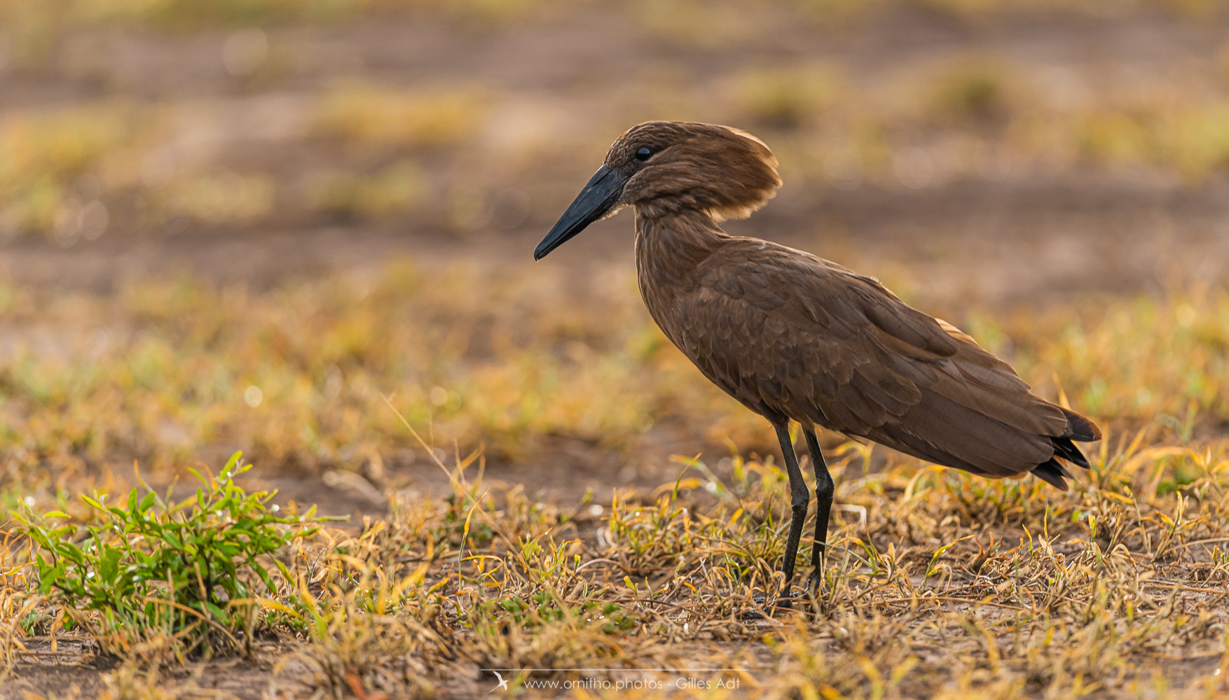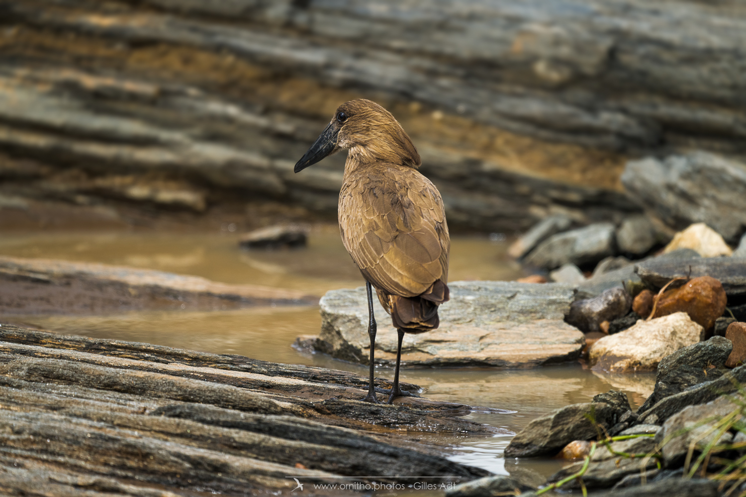 Encore un oiseau unique, l’Ombrette africaine (Scopus umbretta). Unique car le seul membre de la famille des Scopidae et par sa silhouette en « tête de marteau » due à une huppe de forme allongée
