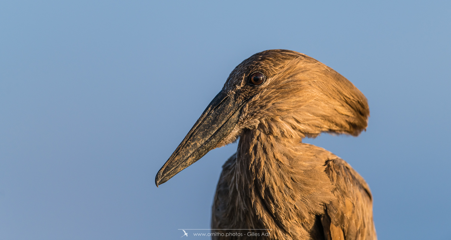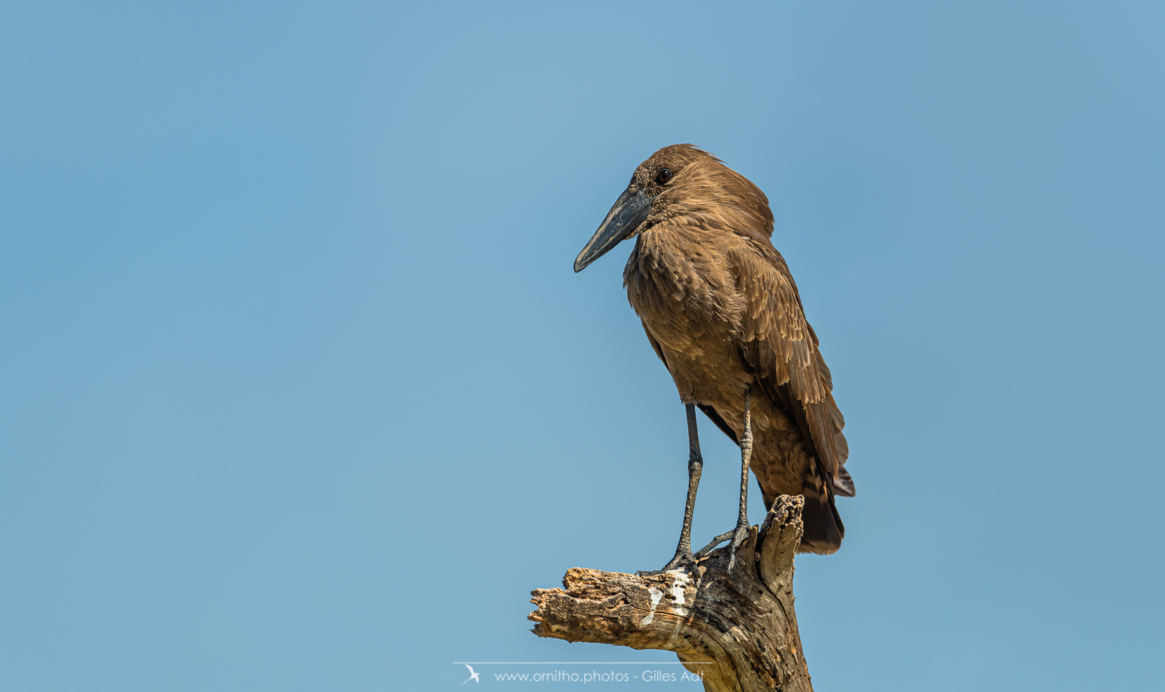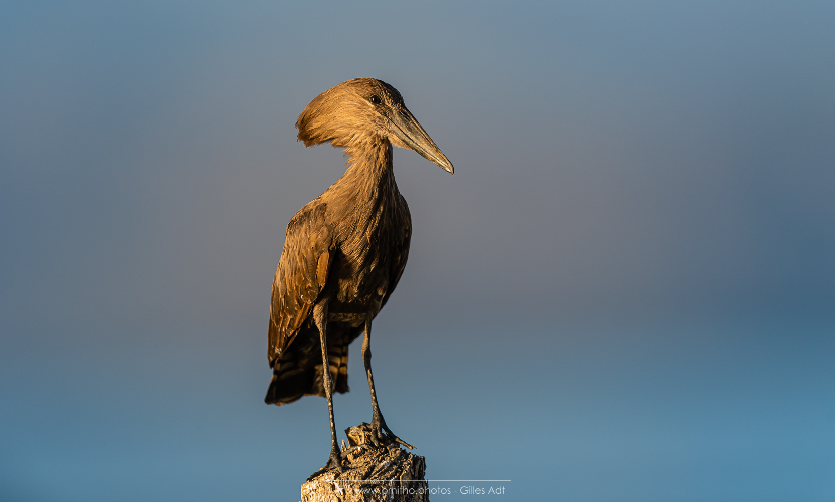 Encore un oiseau unique, l’Ombrette africaine (Scopus umbretta). Unique car le seul membre de la famille des Scopidae et par sa silhouette en « tête de marteau » due à une huppe de forme allongée