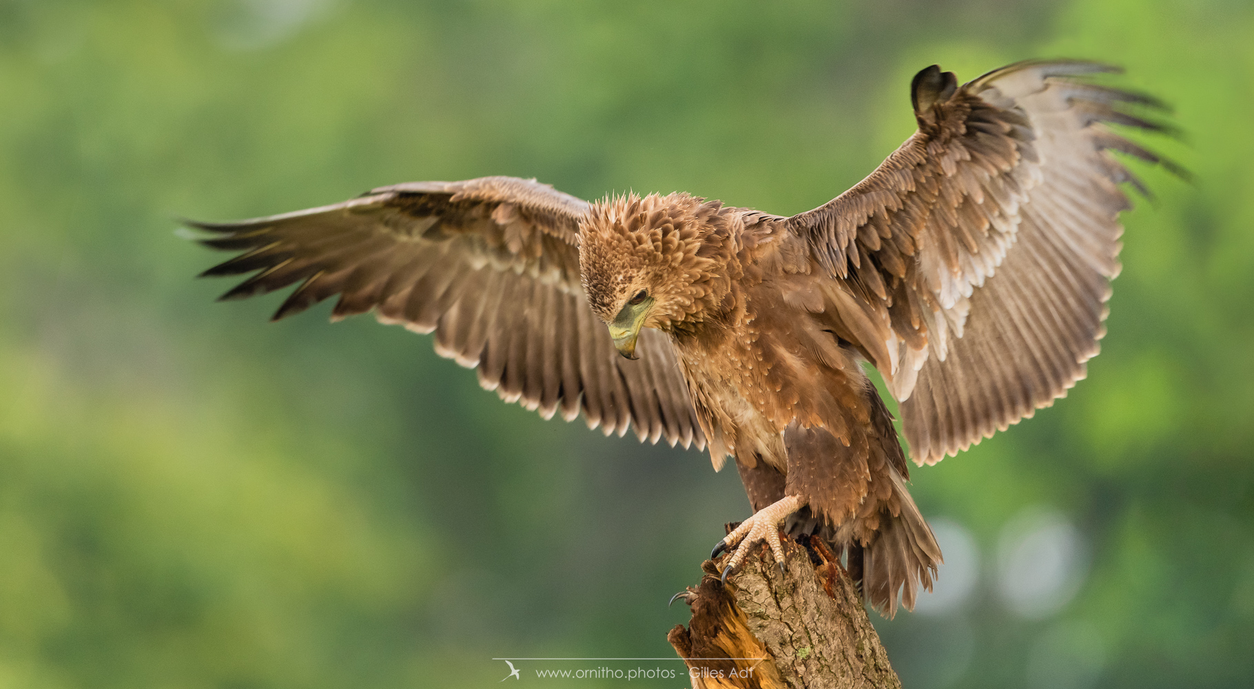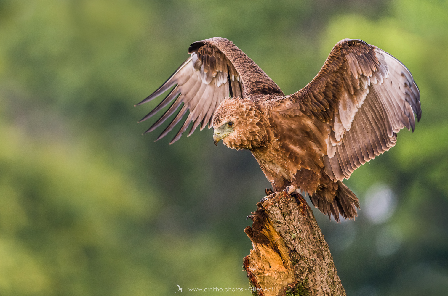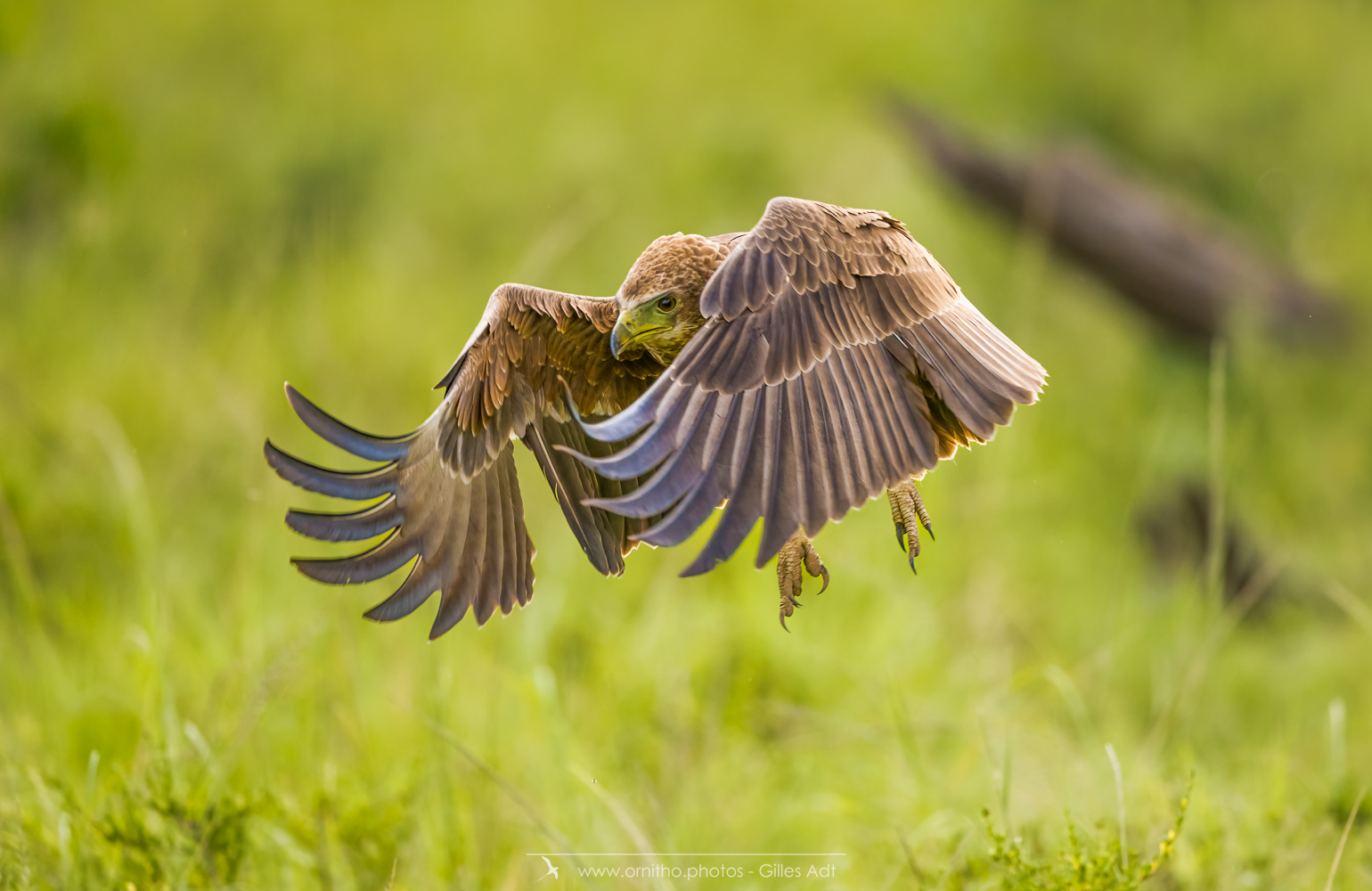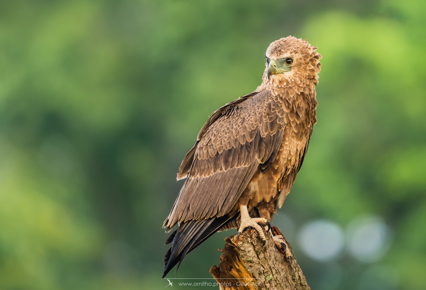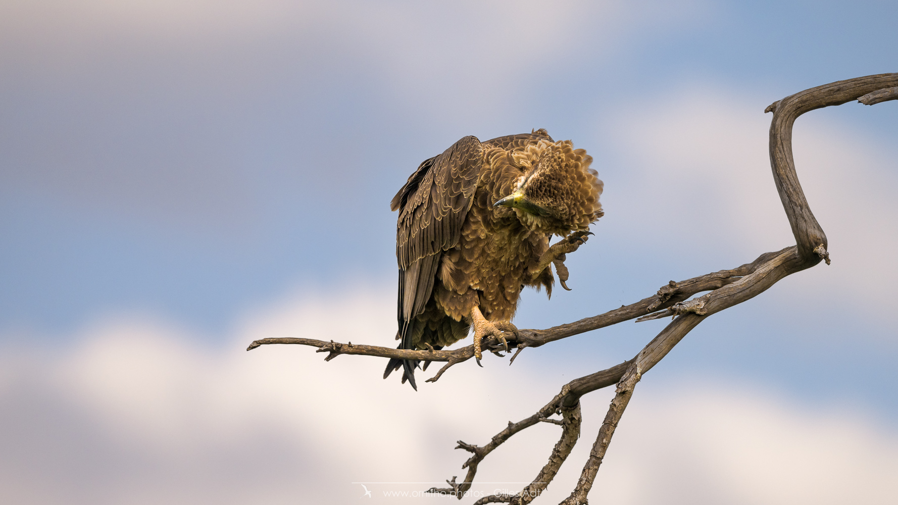 Le Bateleur des Savanes (Terathopius ecaudatus) est le rapace africain le plus coloré : l’adulte est noir avec le dos roux, les pattes et la peau nue de la base du bec sont rouge-orange. Le juvénile est très différent car brun-roux. Avec ses 1m90 d’envergure c’est un des plus beaux rapaces africain.