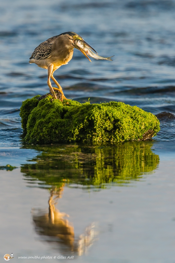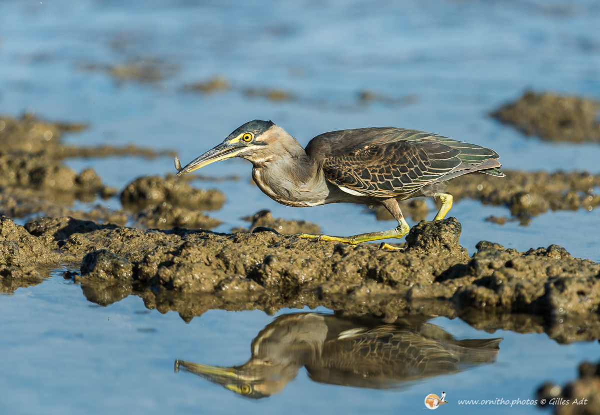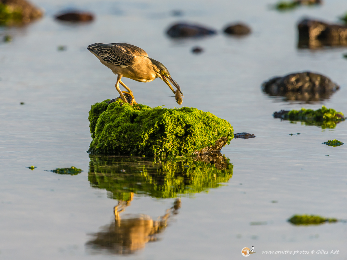 Le héron strié (Butorides striata) vit en couple ou en solitaire le long des rivières calmes et des milieux lacustres. D’un perchoir dégagé il surveille ses proies et peut fondre sur un poisson en surface. Il est présent sur toutes les grandes iles de l’Océan Indien (Madagascar, Maurice, Rodrigues, Réunion, Mayotte…).