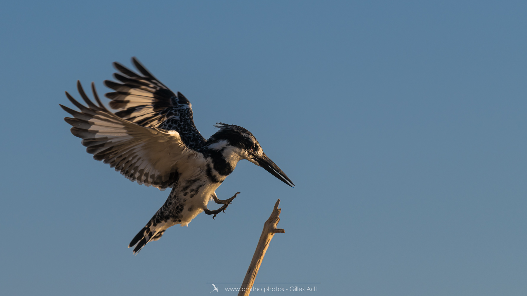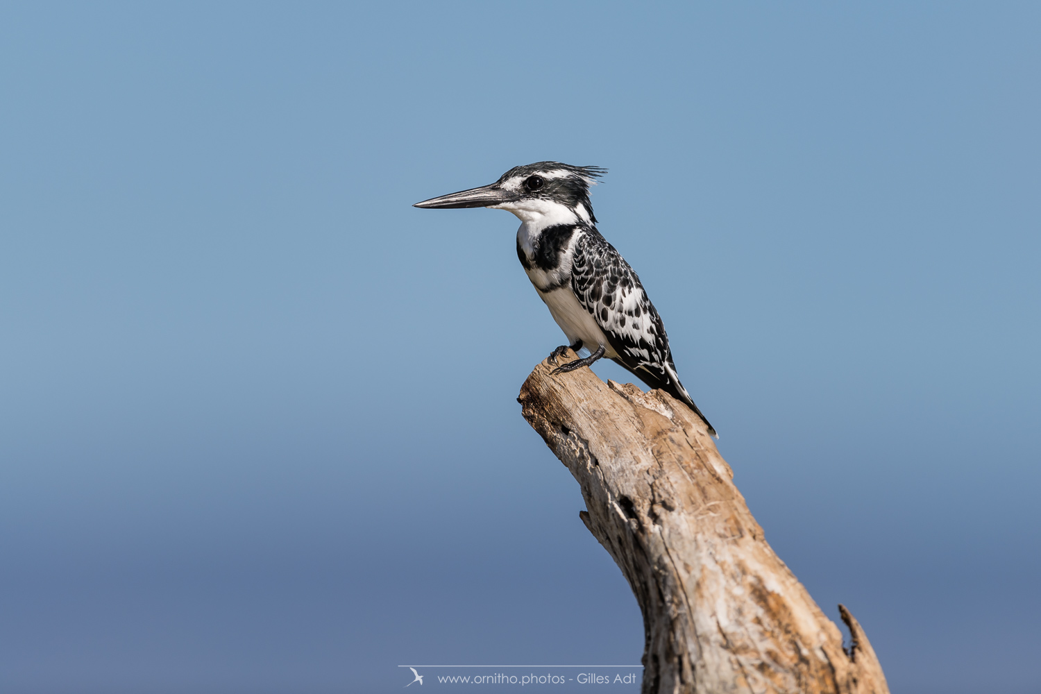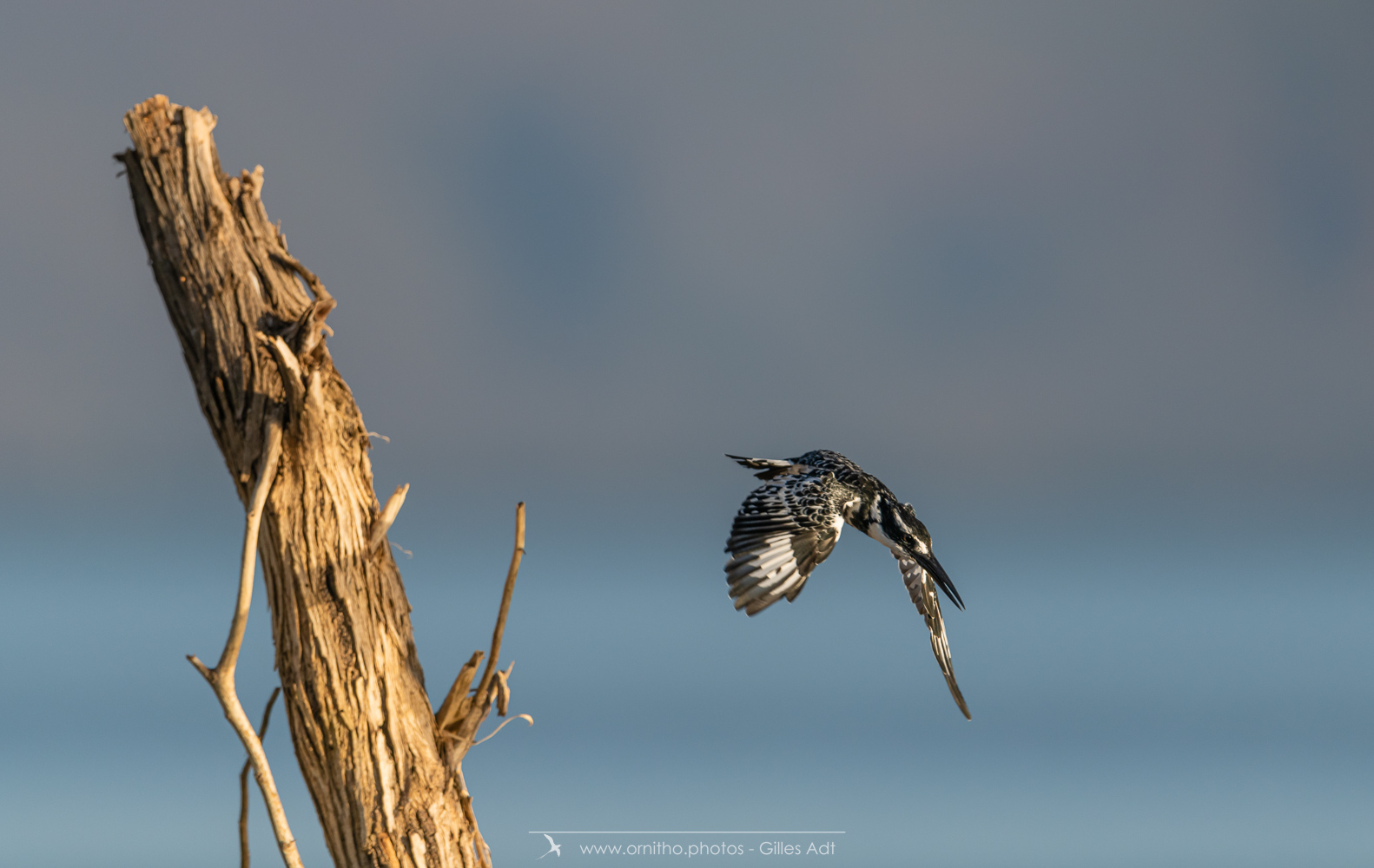 Le Alcyon pie (Ceryle rudis) est l’un des moins coloré parmi les Martin-pêcheur mais son plumage noir et blanc le rend reconnaissable immédiatement. C’est un trés bon pécheur et l’observer en train de faire un vol en surplace avant de plonger.