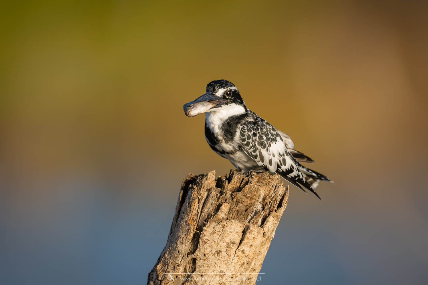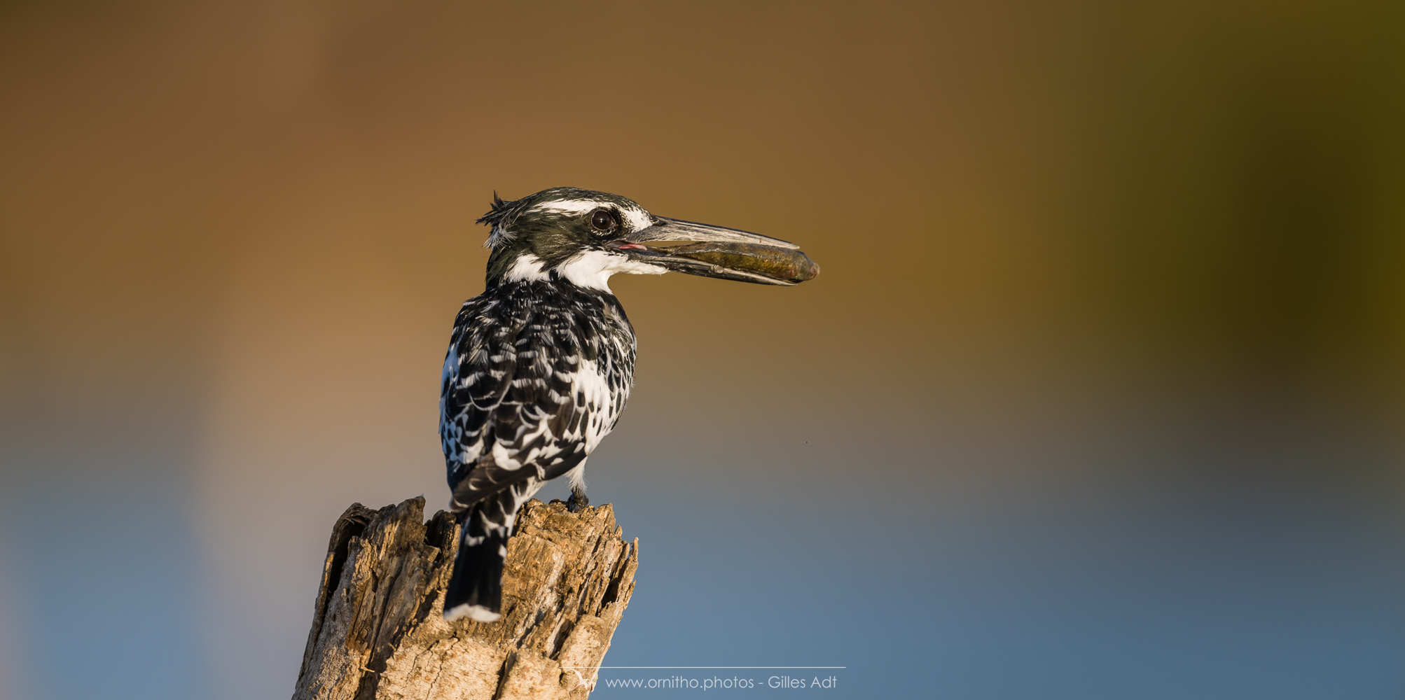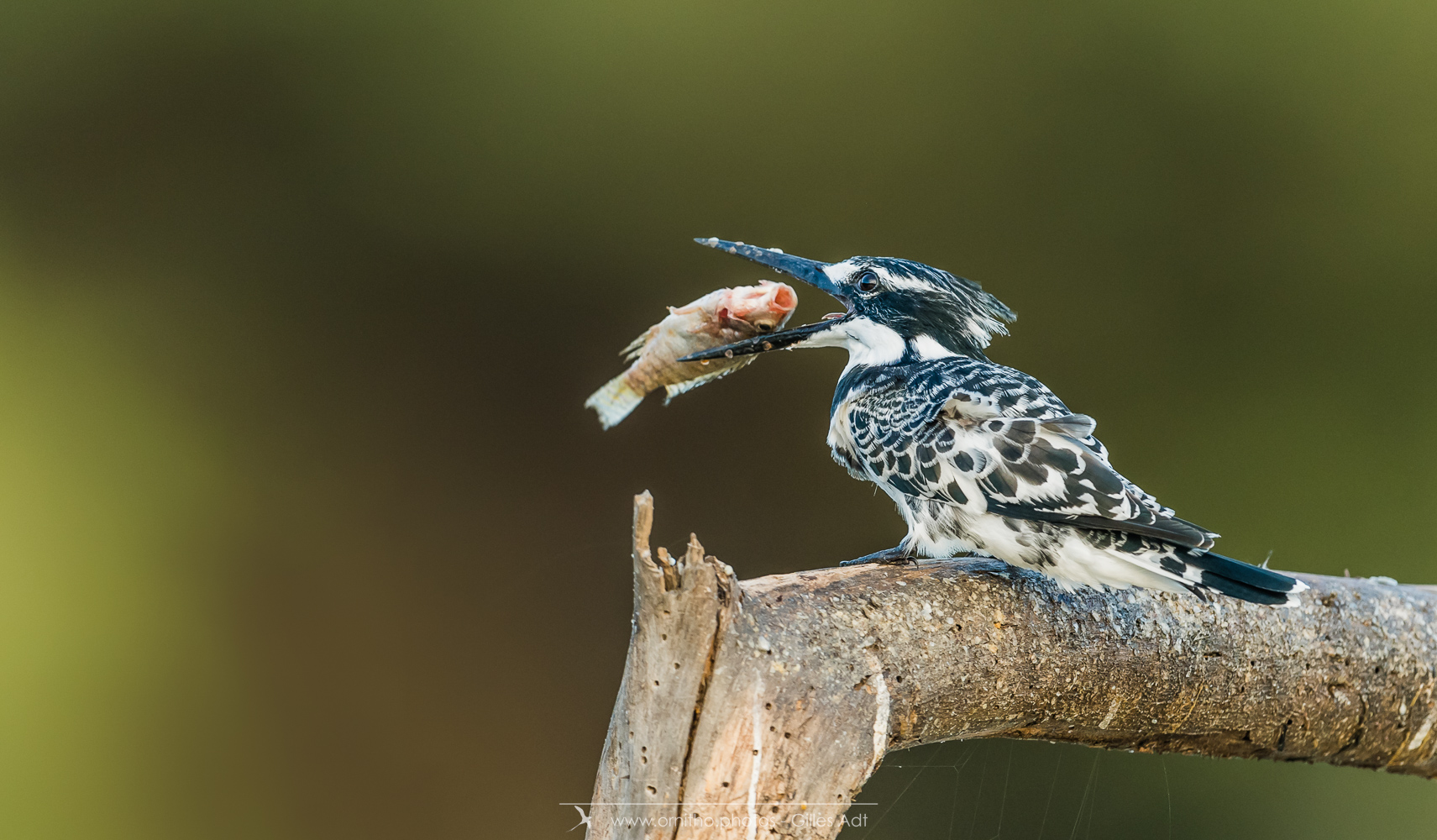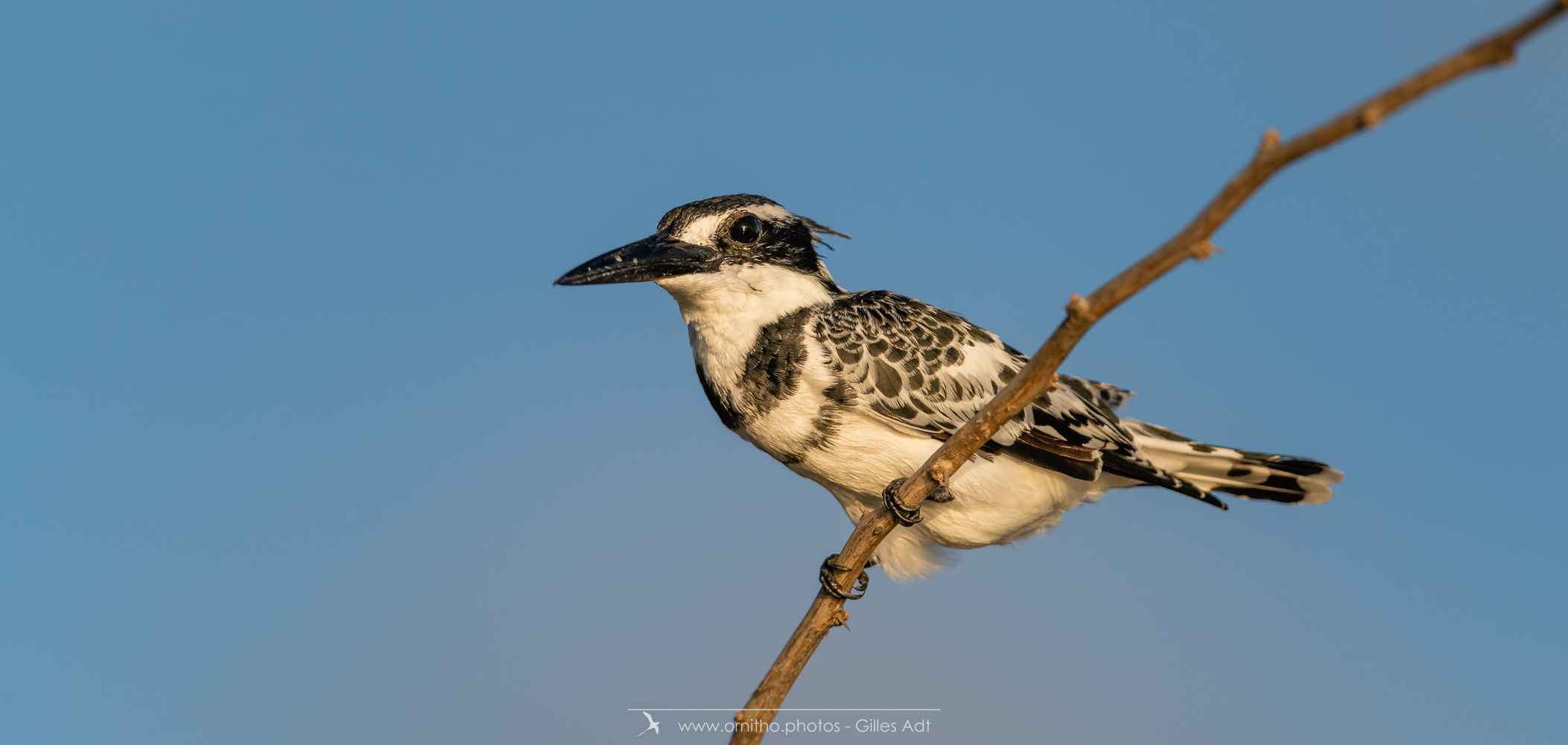 Le Alcyon pie (Ceryle rudis) est l’un des moins coloré parmi les Martin-pêcheur mais son plumage noir et blanc le rend reconnaissable immédiatement. C’est un trés bon pécheur et l’observer en train de faire un vol en surplace avant de plonger.