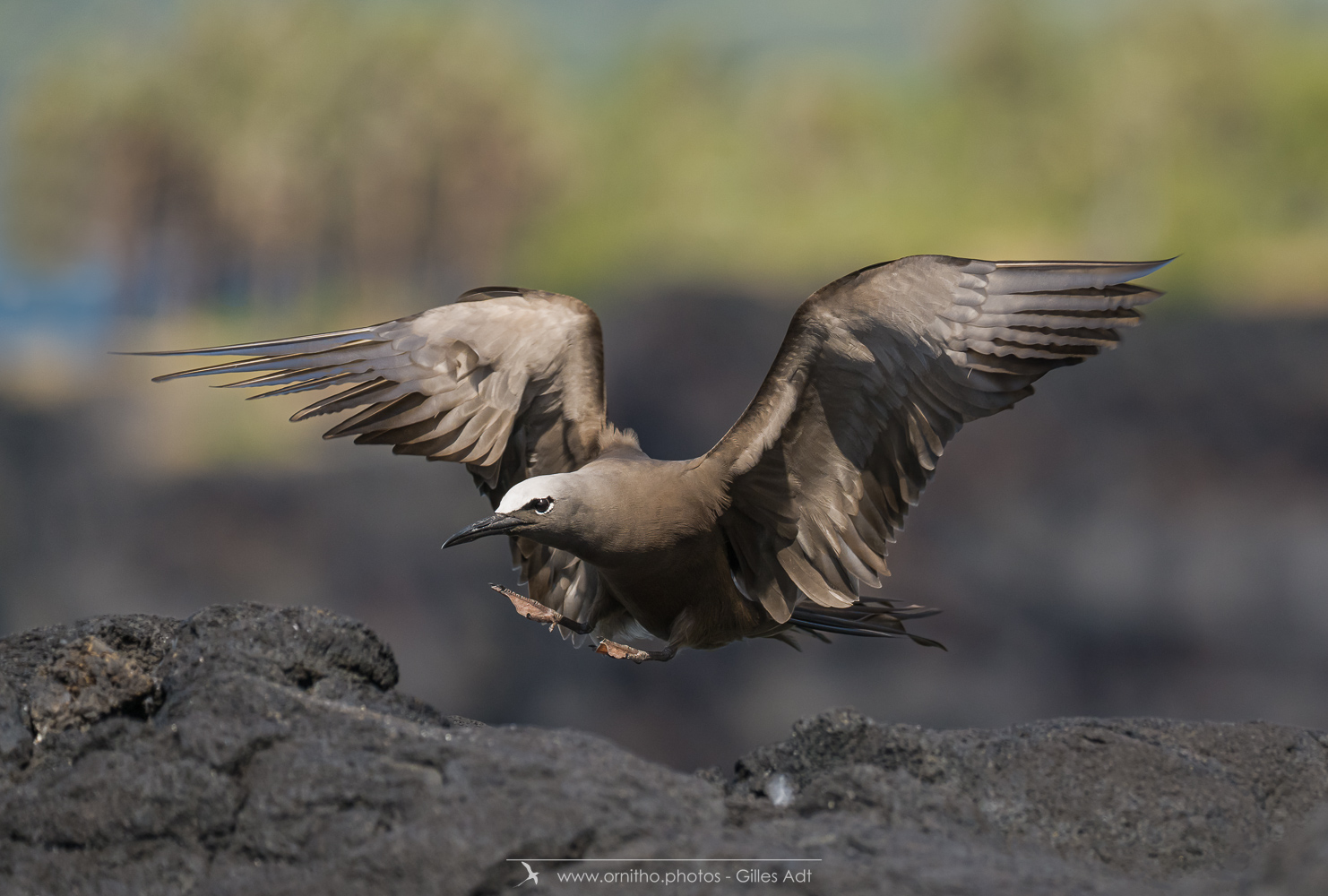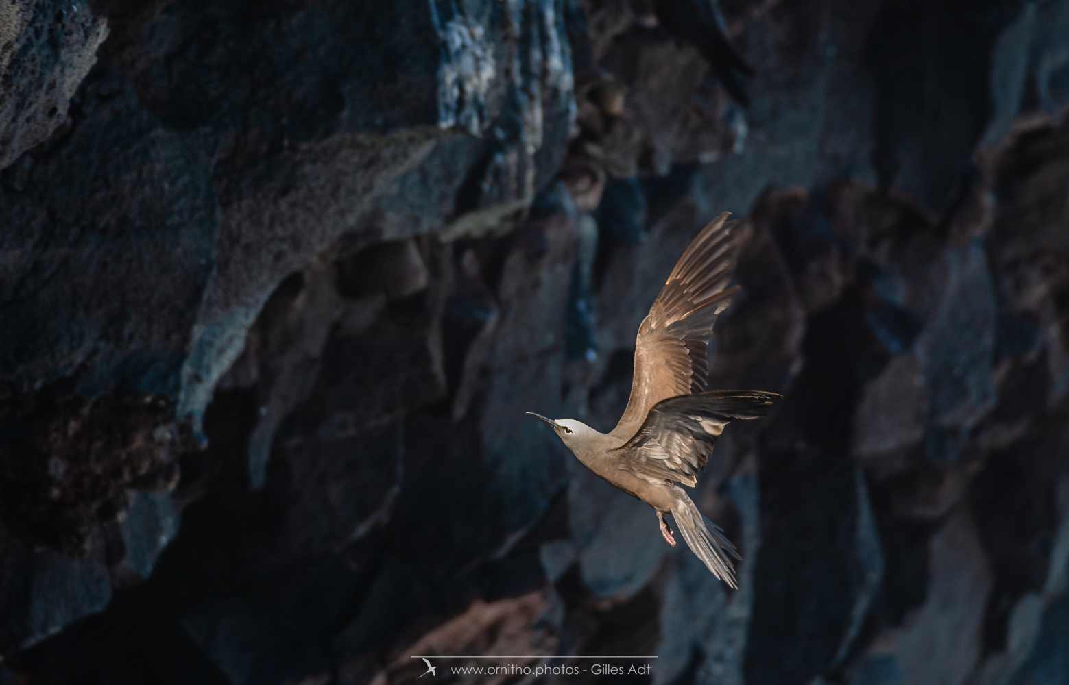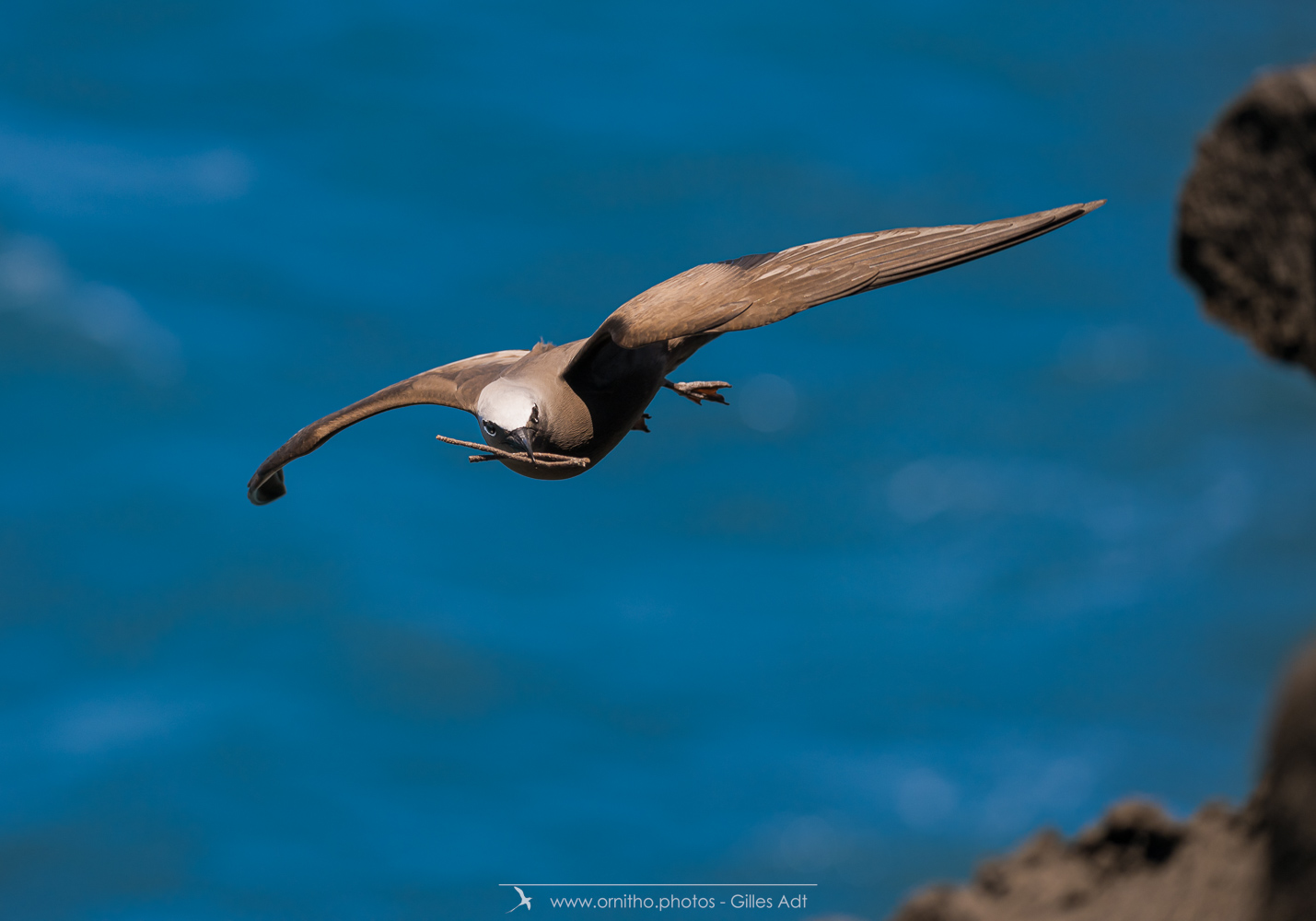 le Noddi brun (Anous stolidus) ou noddi niais est un oiseau marin qui niche sur les îles tropicales ou subtropicales autour du globe. Deux sites de nidifications existent à la Réunion. Le noddi brun est brun foncé avec une calotte gris-lavande et un croissant blanc au dessus de l’oeil.
