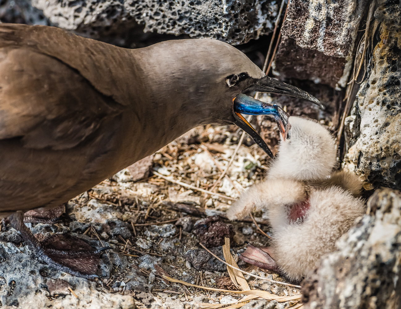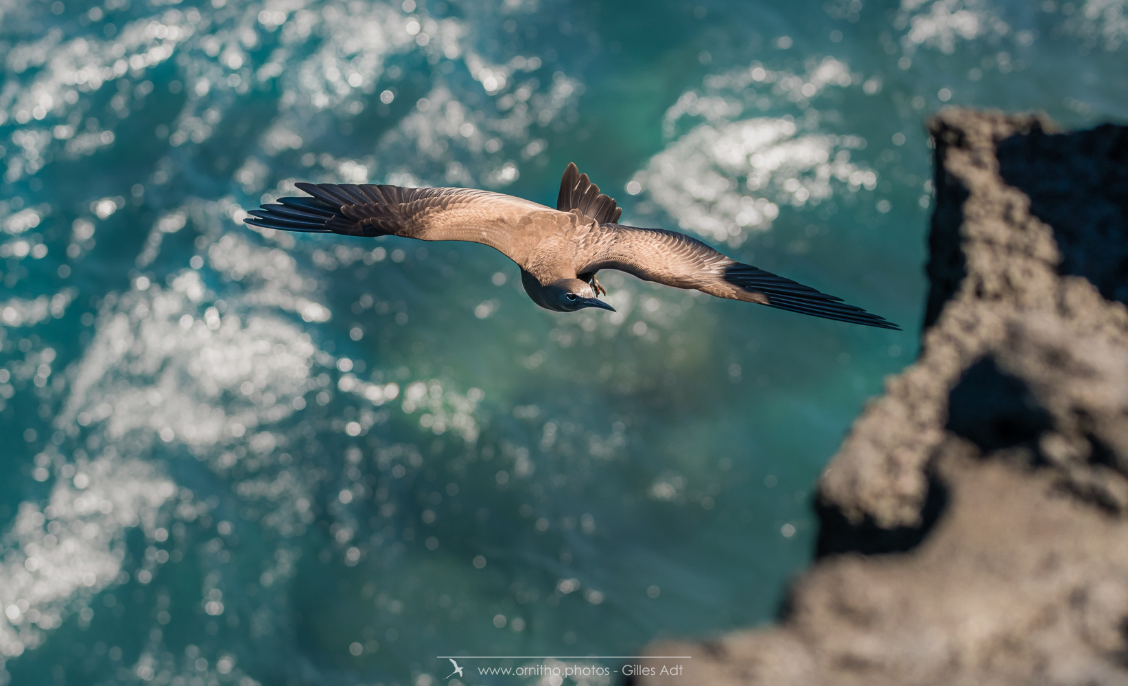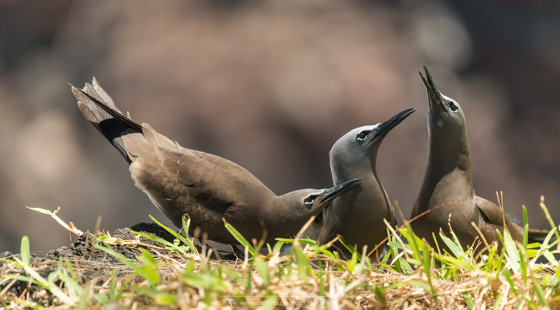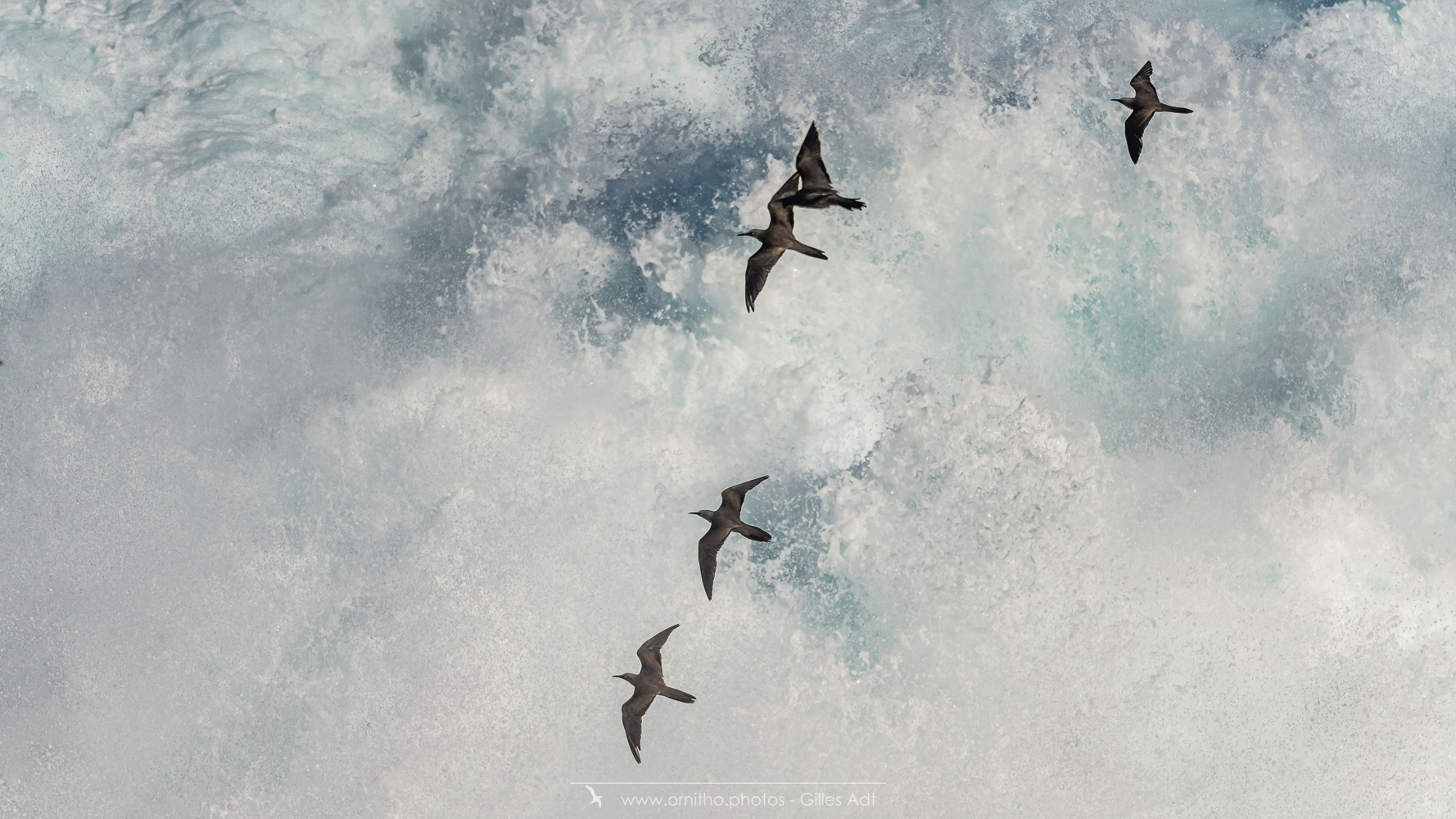 le Noddi brun (Anous stolidus) ou noddi niais est un oiseau marin qui niche sur les îles tropicales ou subtropicales autour du globe. Deux sites de nidifications existent à la Réunion. Le noddi brun est brun foncé avec une calotte gris-lavande et un croissant blanc au dessus de l’oeil.