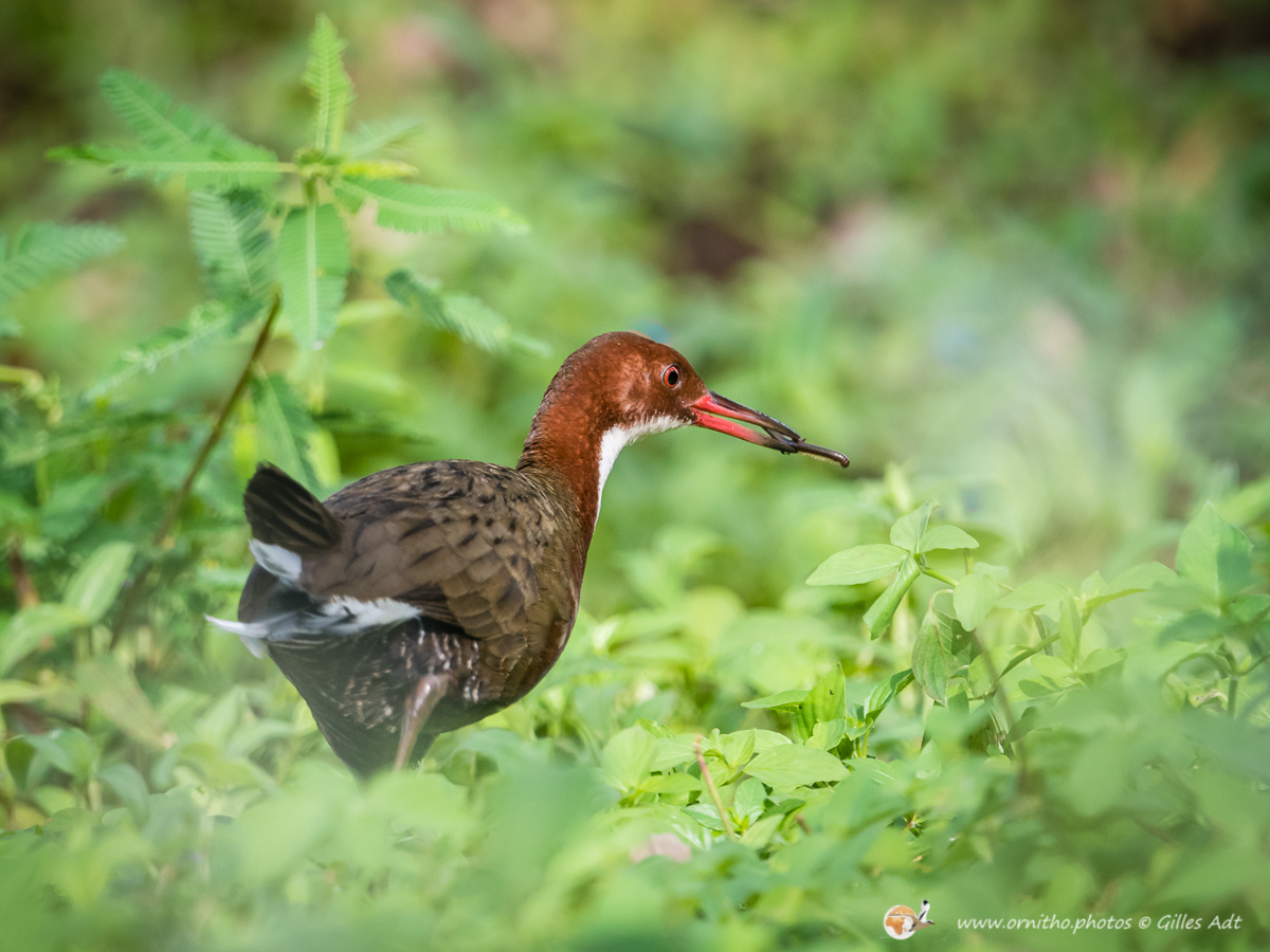 Le Râle de Cuvier ( Dryolimnas cuvieri – White-throated Rail) est le seul représentant du genre Dryolimnas. A Mayotte il a été pendant plusieurs dizaines d’années considéré comme «probablement» disparu. La déstruction de son biotope et sa discrétion en sont les raisons principales. Il est entièrement brun châtaigne, à l’exception de sa gorge blanche et pèse entre 150 et 230 grammes. Les photos ont été réalisées grâce au GEPOMAY