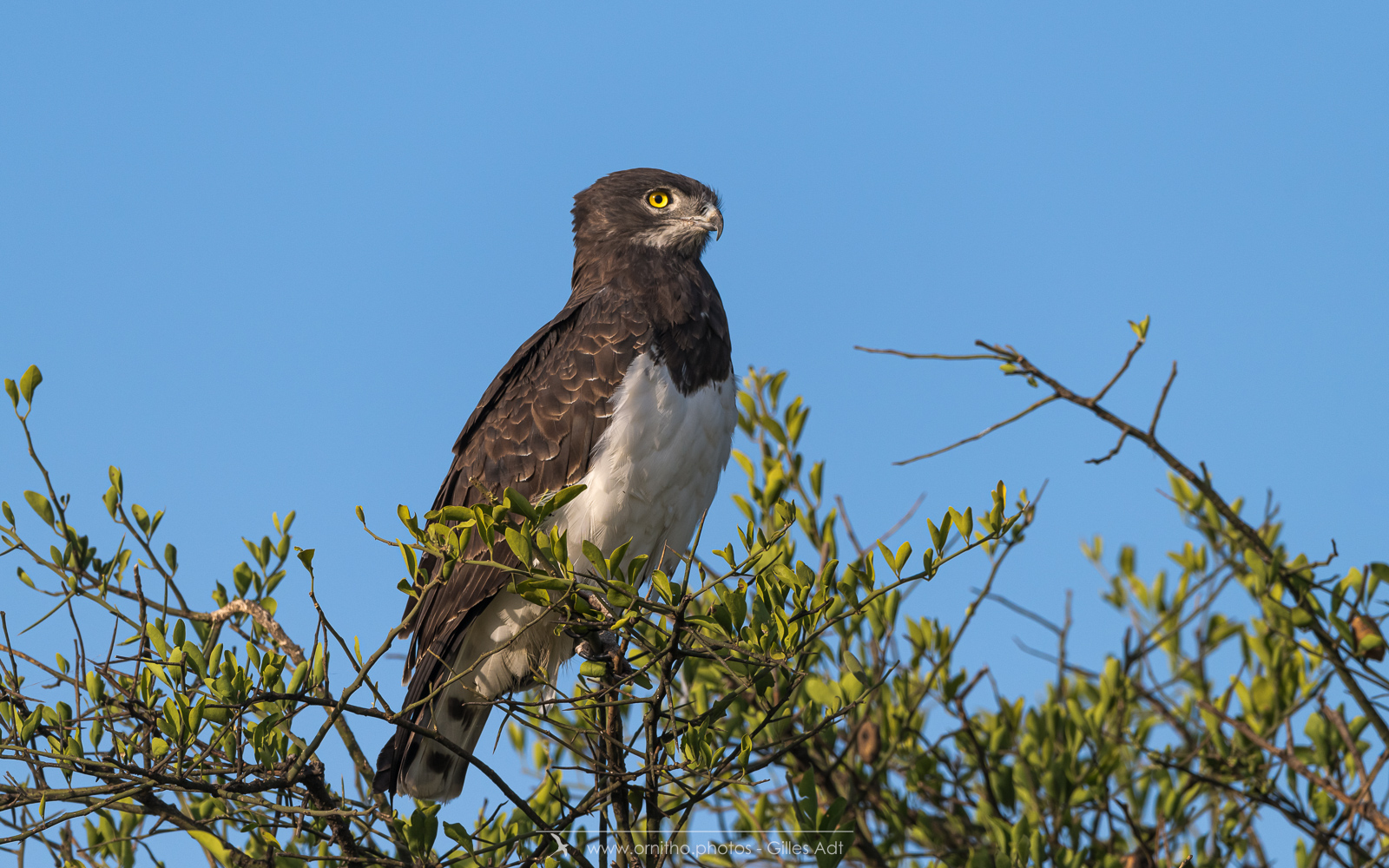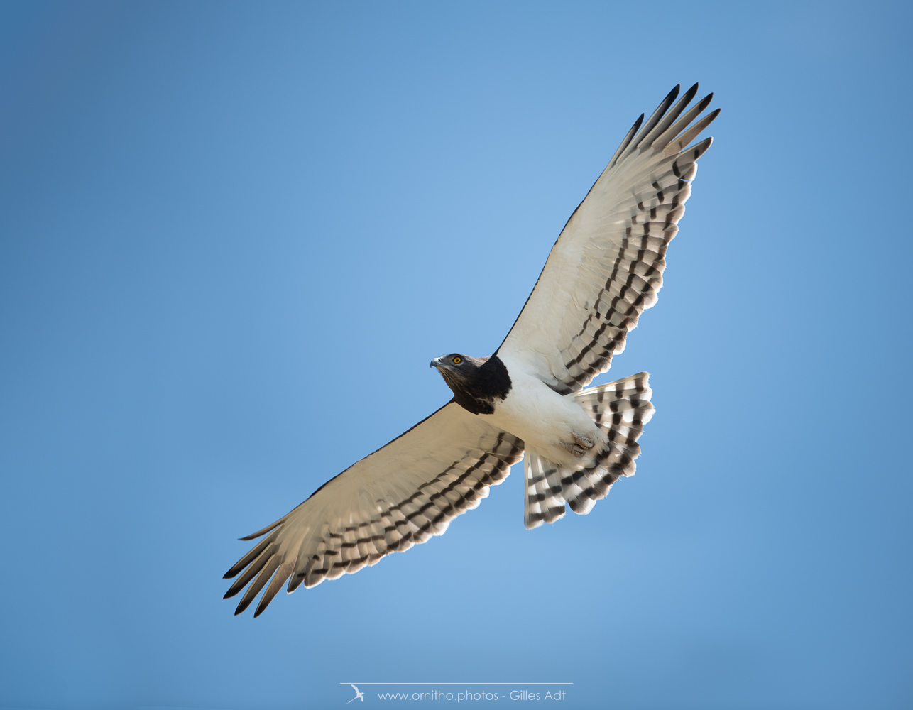 le Circaète à poitrine noire (Circaetus pectoralis) est un rapace diurne vivant en Afrique sub-saharienne. Il se nourrit principalement de lézards et serpent d’où son nom anglais de Black-chested Snake Eagle.