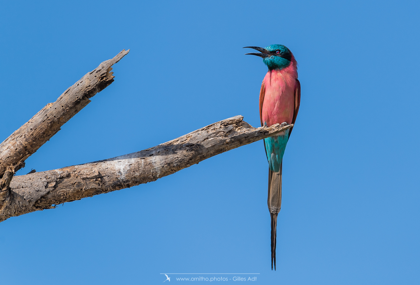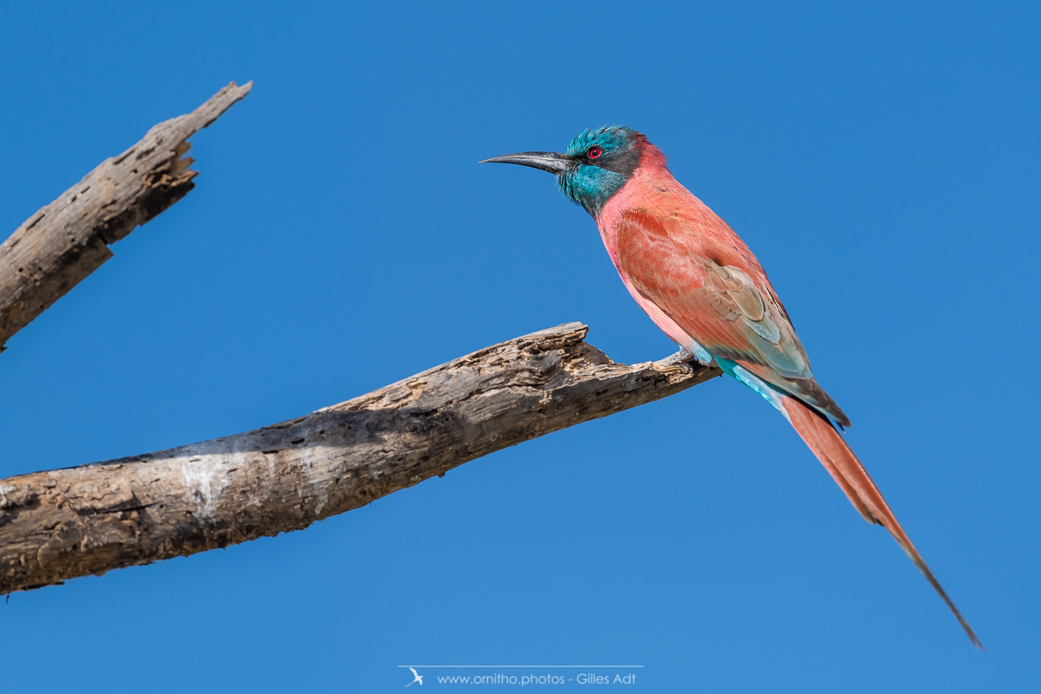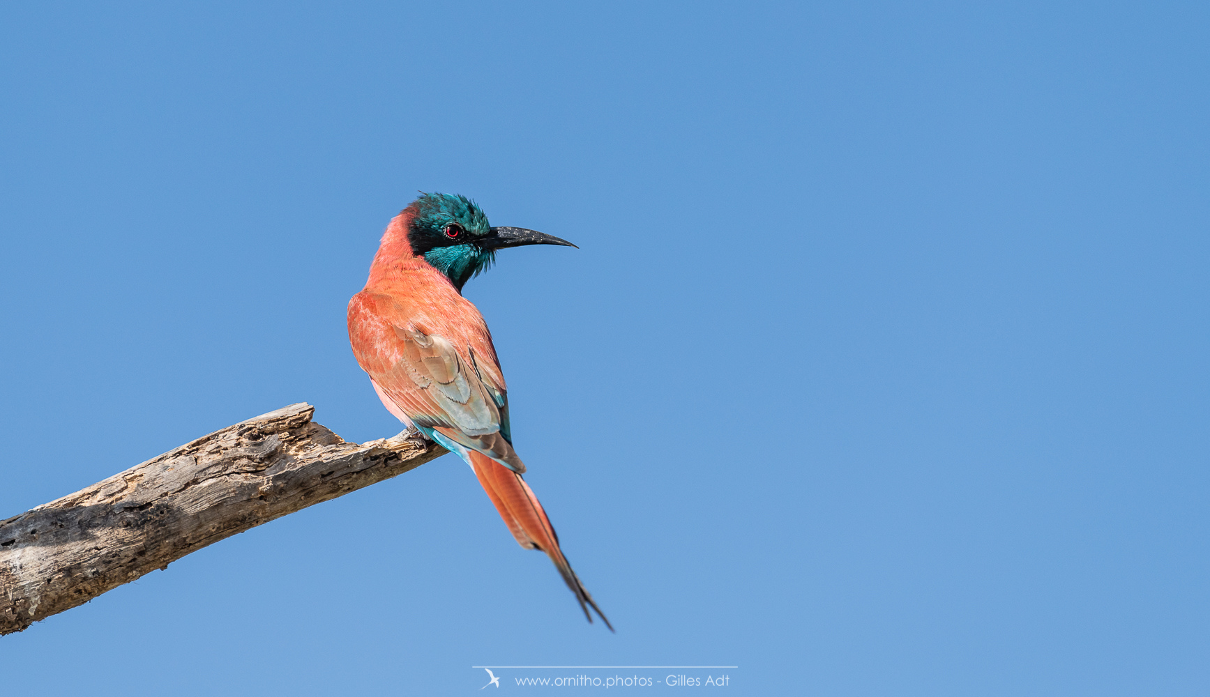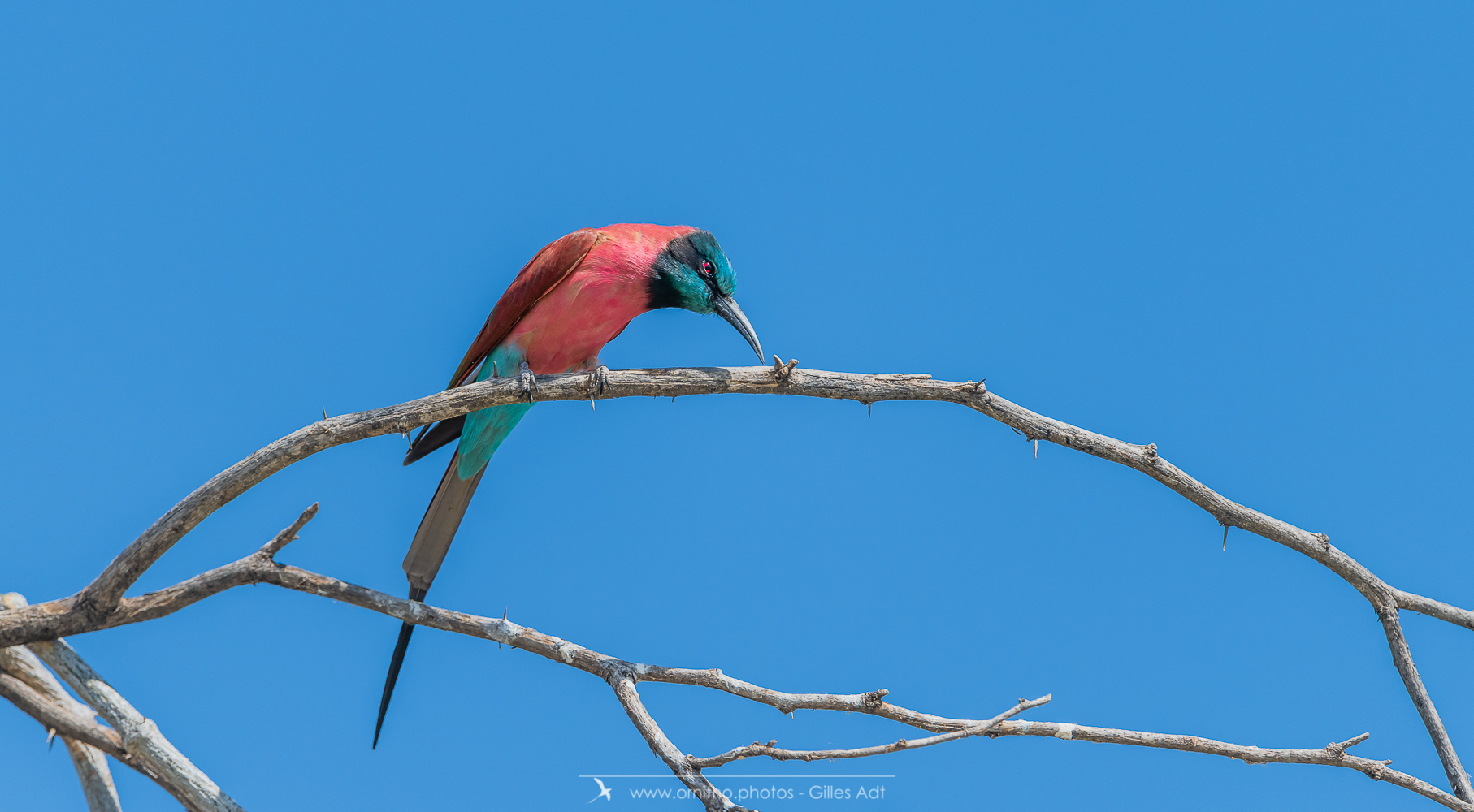 Encore un oiseau très coloré, le Guêpier écarlate (Merops nubicus). Le Guêpier écarlate a une robe écarlate, un capuchon bleu et l’œil rouge…. Juste magique à observer dans toute l’Afrique tropicale.