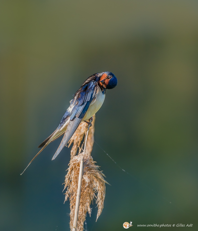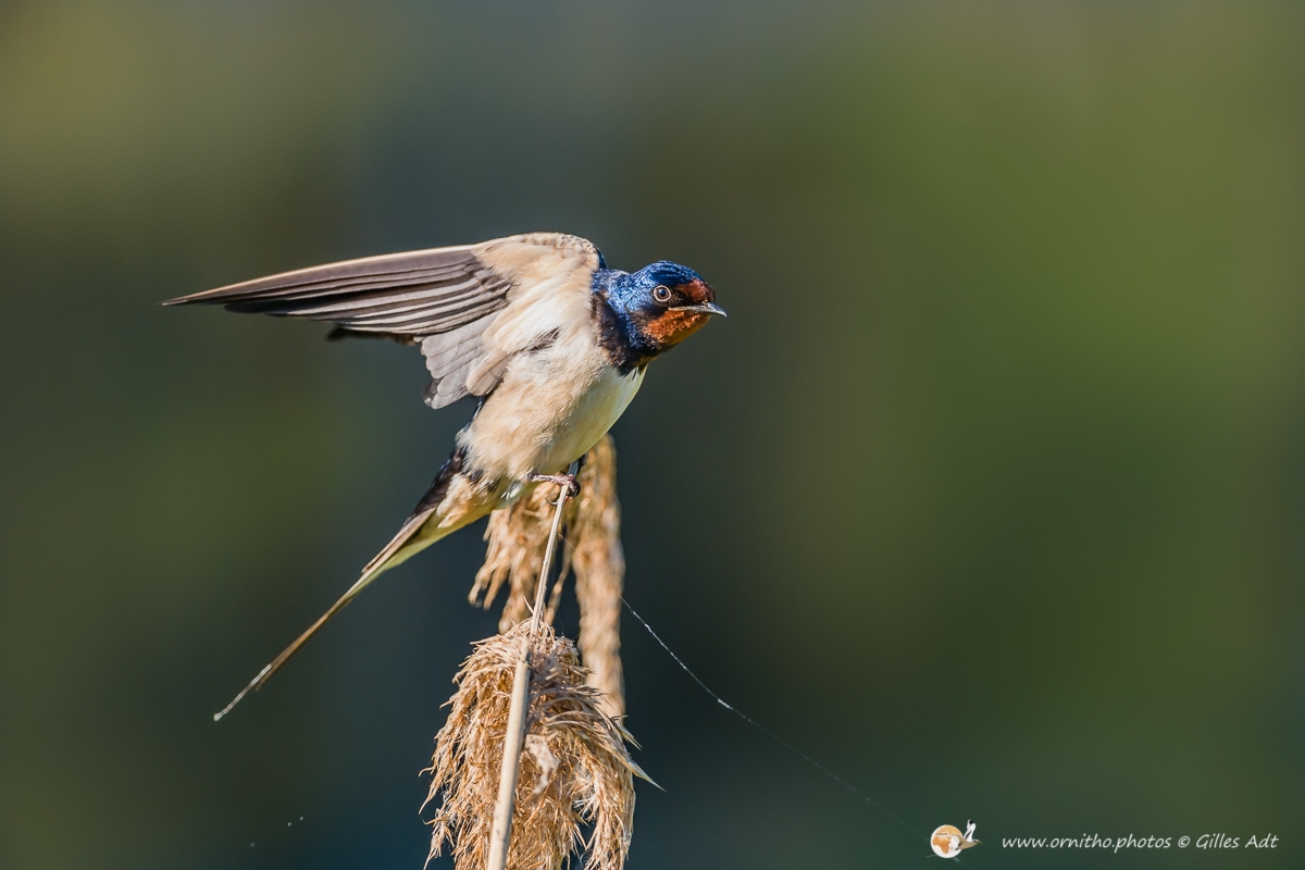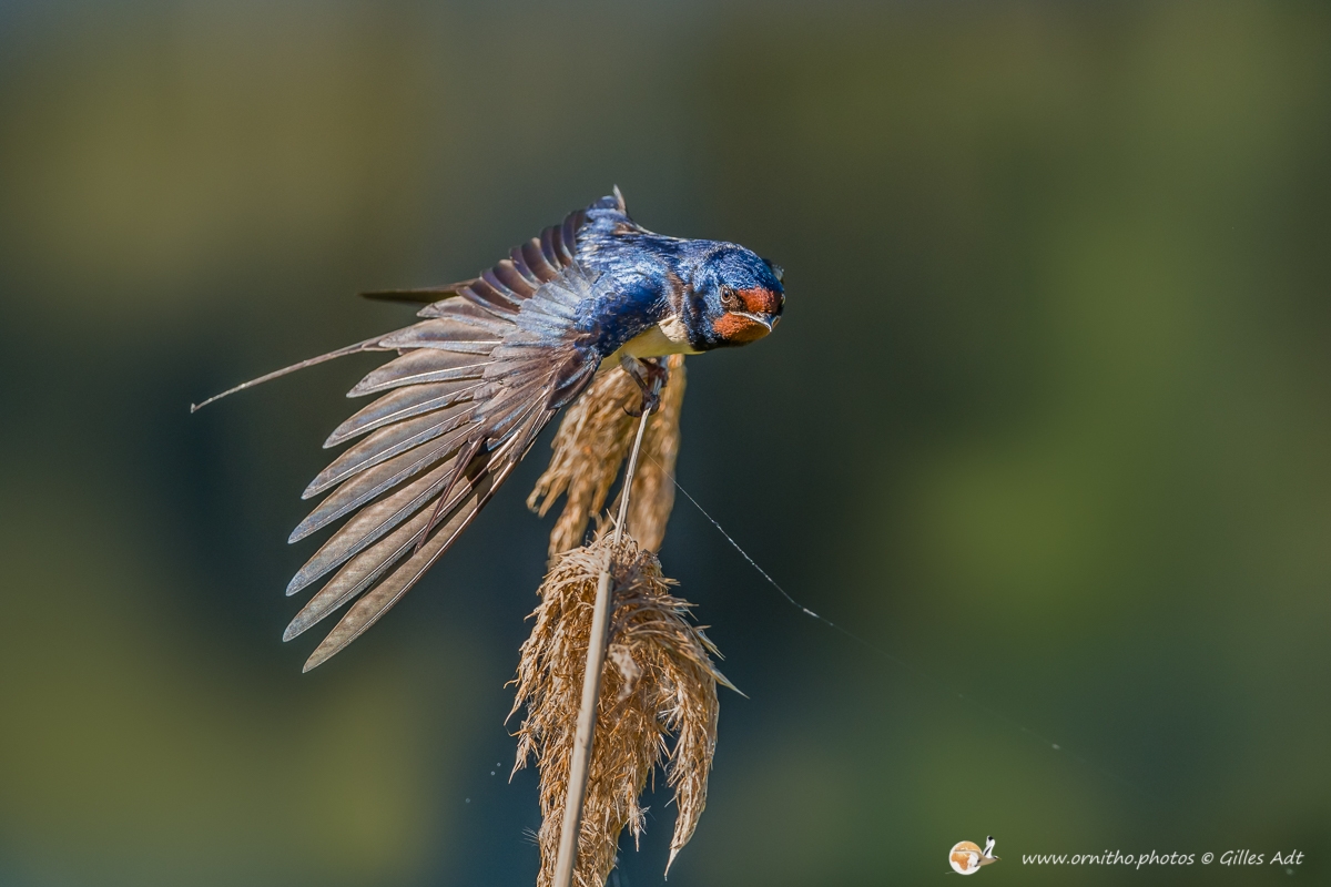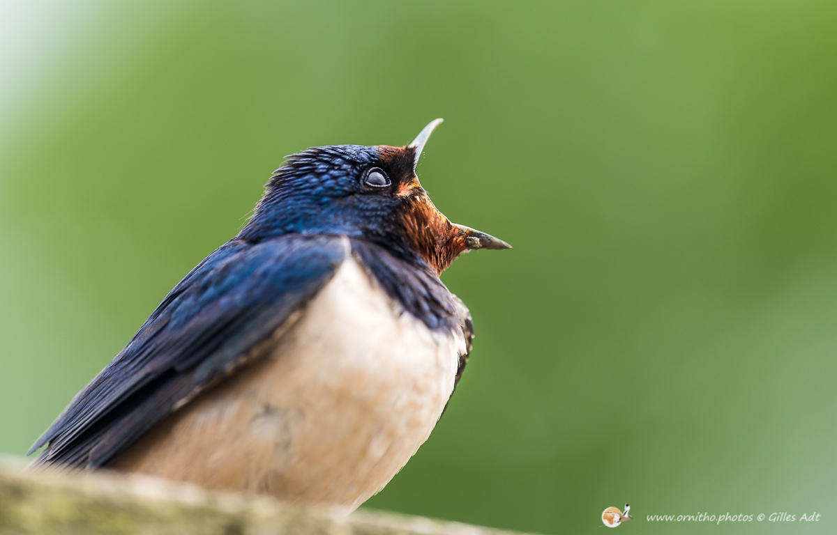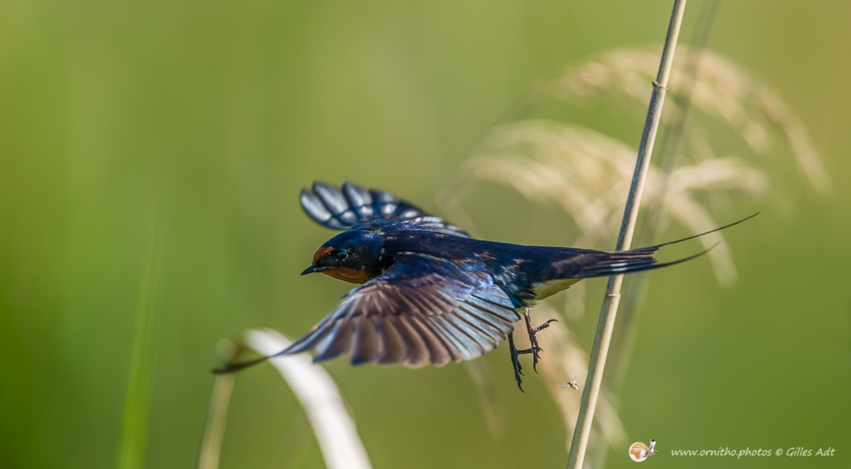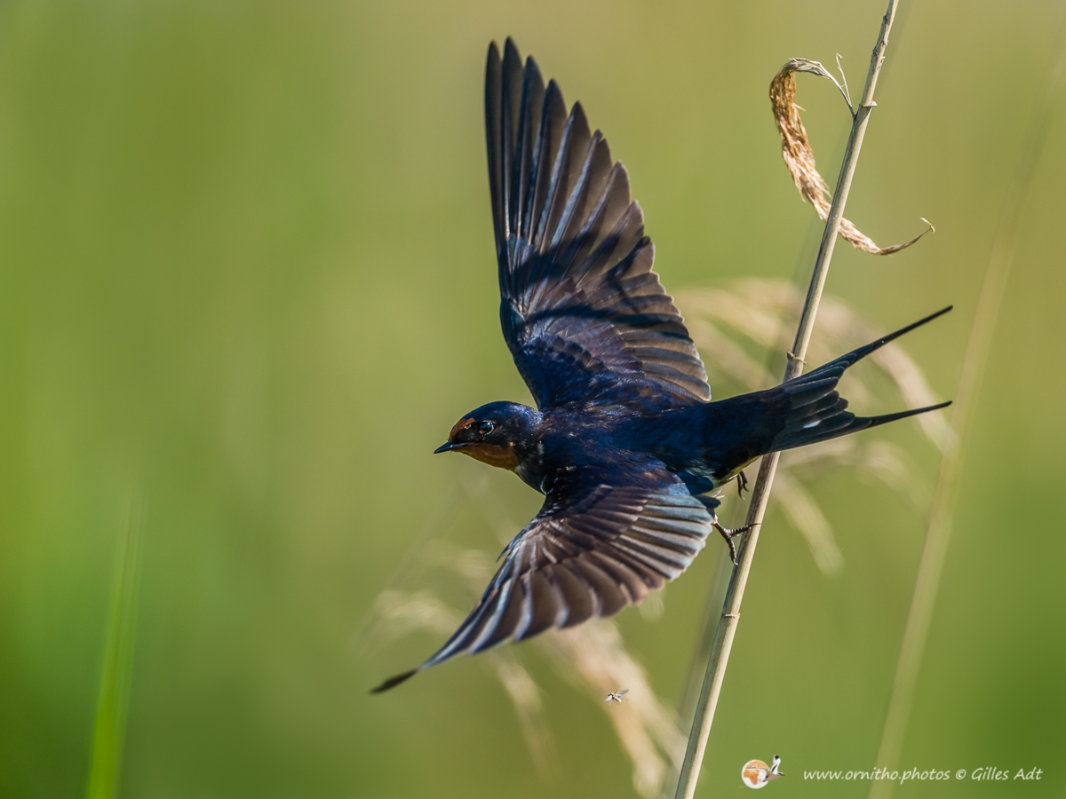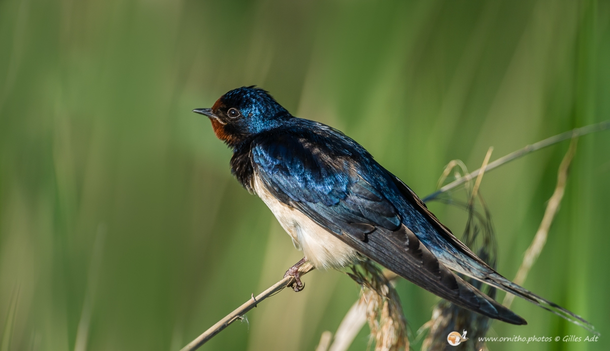 L’Hirondelle rustique (Hirundo rustica) est un des symboles des campagnes françaises… mais aussi quasiment du monde entier… Son vol et sa silhouette dans les ciels d’été sont unique. Son plumage bleu-noir avec des reflets métalliques qui contrastent avec le dessous blanchâtre permet aussi d’identifier rapidement cet oiseau d’une trentaine de grammes.