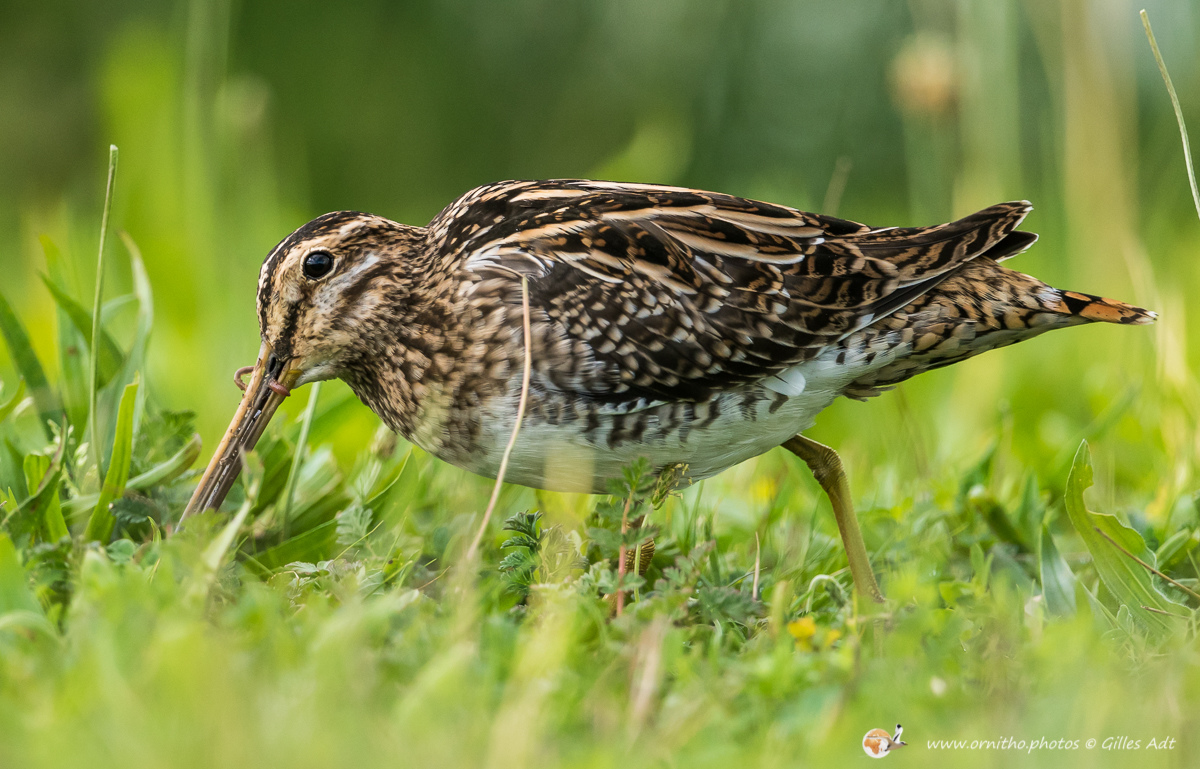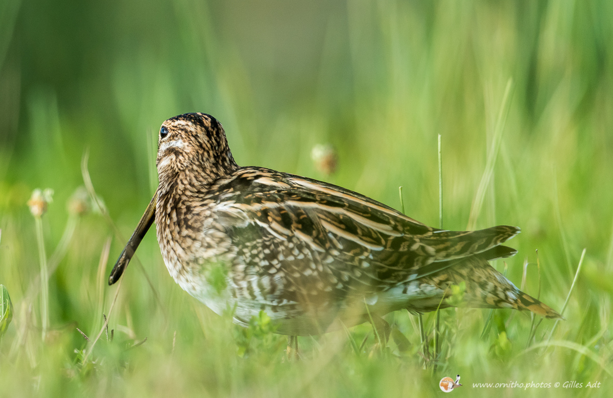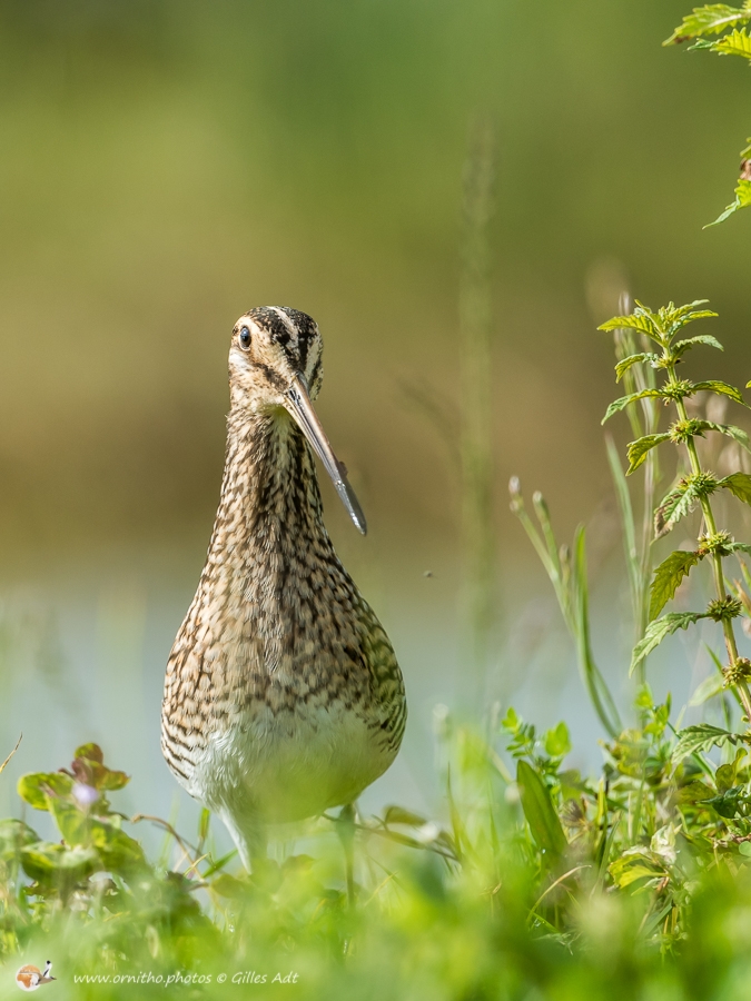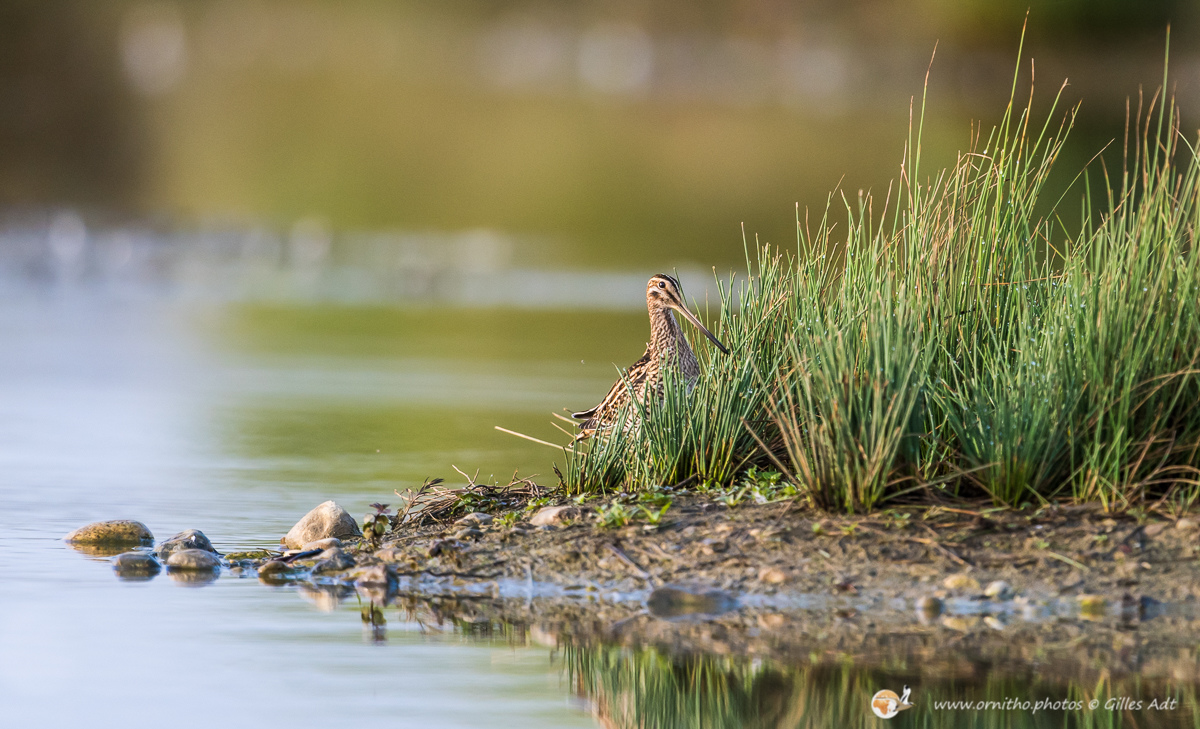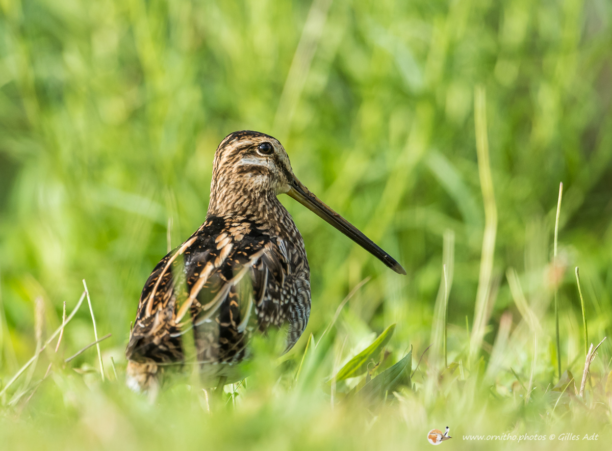 La Bécassine des marais (Gallinago gallinago), comme son nom l’indique, vit dans zones en limite des marais d’eau douce ou des étangs. Son plumage est densément rayé sur le dos et une rayure foncée travers les yeux, encadrée de deux rayures plus claires.