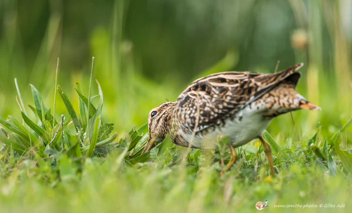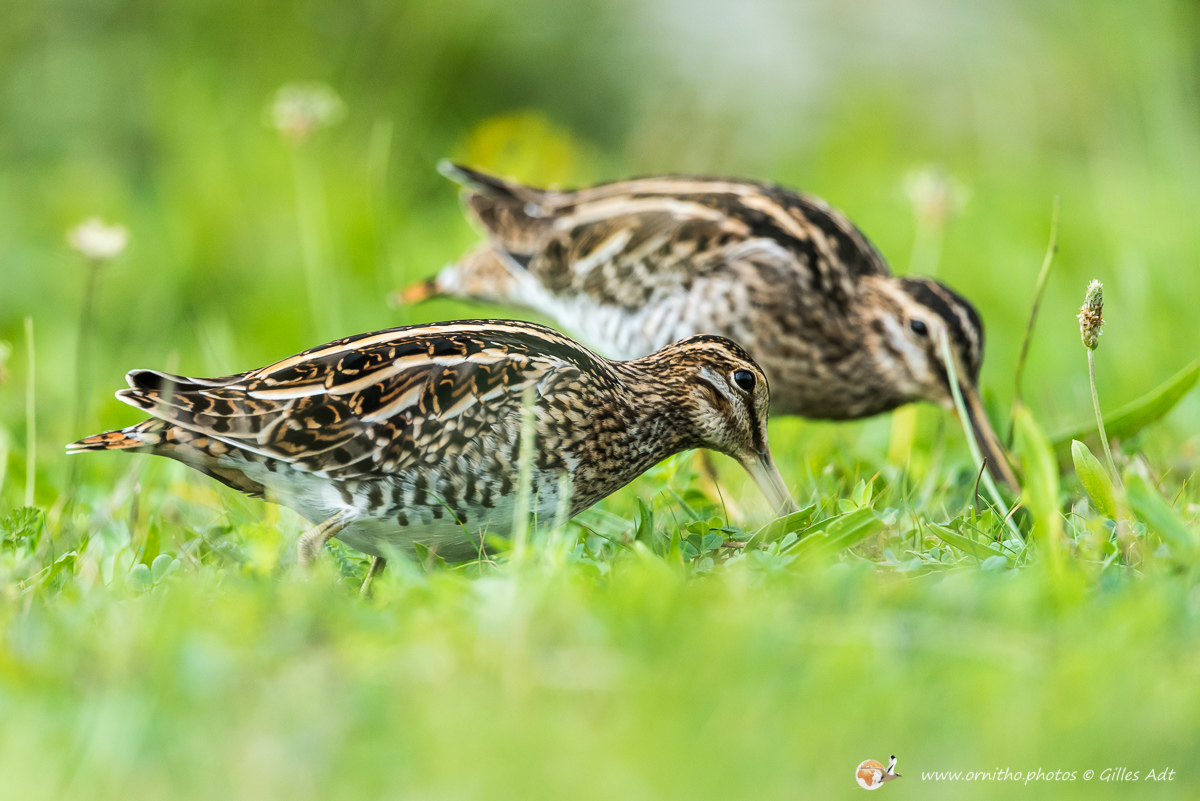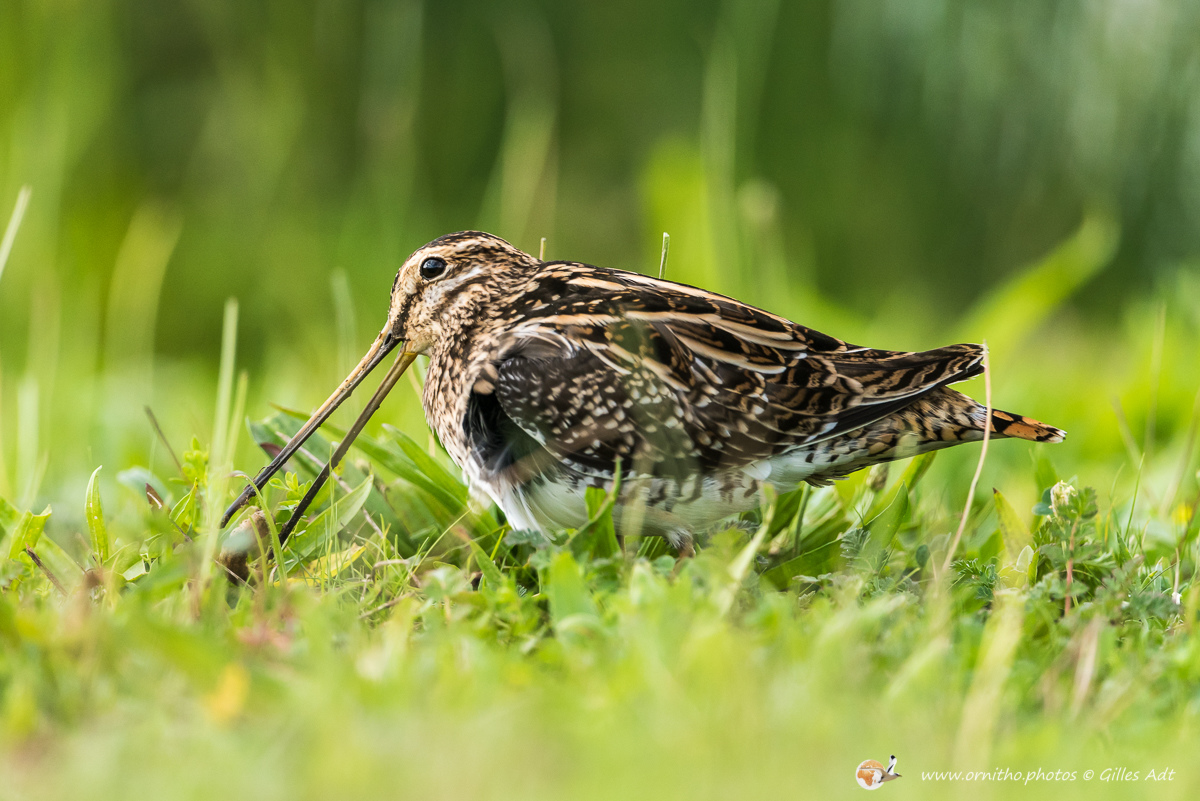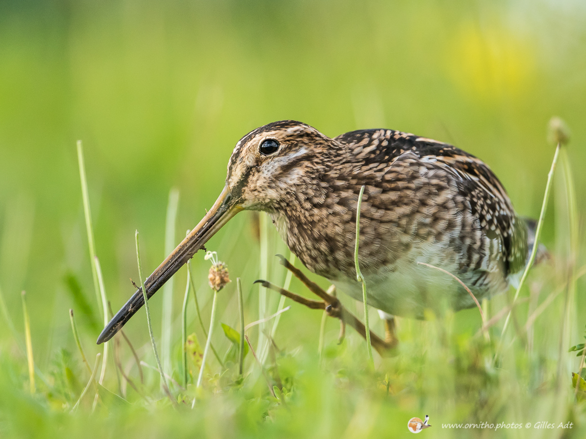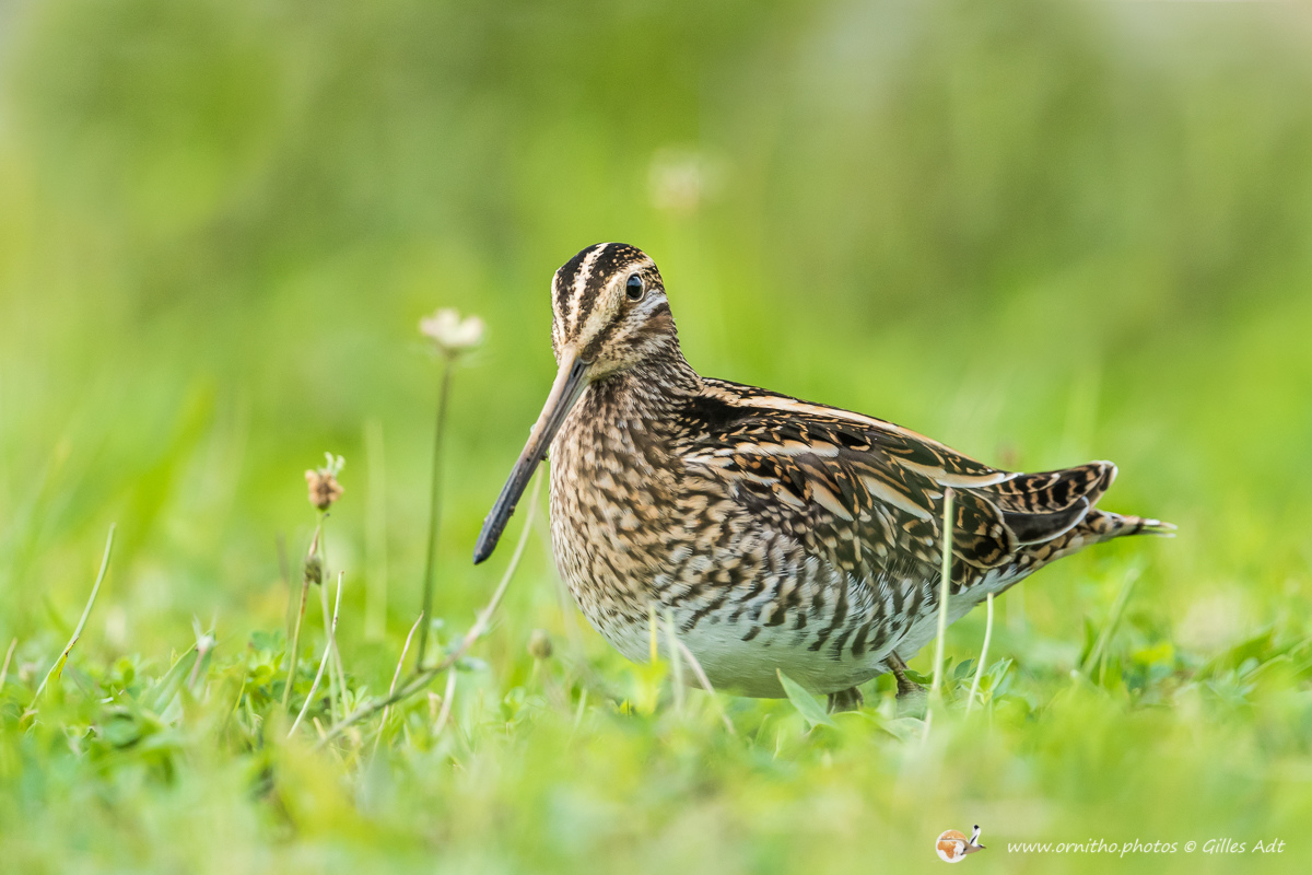 La Bécassine des marais (Gallinago gallinago), comme son nom l’indique, vit dans zones en limite des marais d’eau douce ou des étangs. Son plumage est densément rayé sur le dos et une rayure foncée travers les yeux, encadrée de deux rayures plus claires.