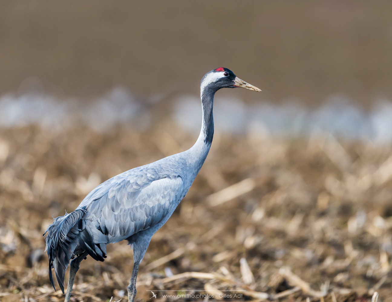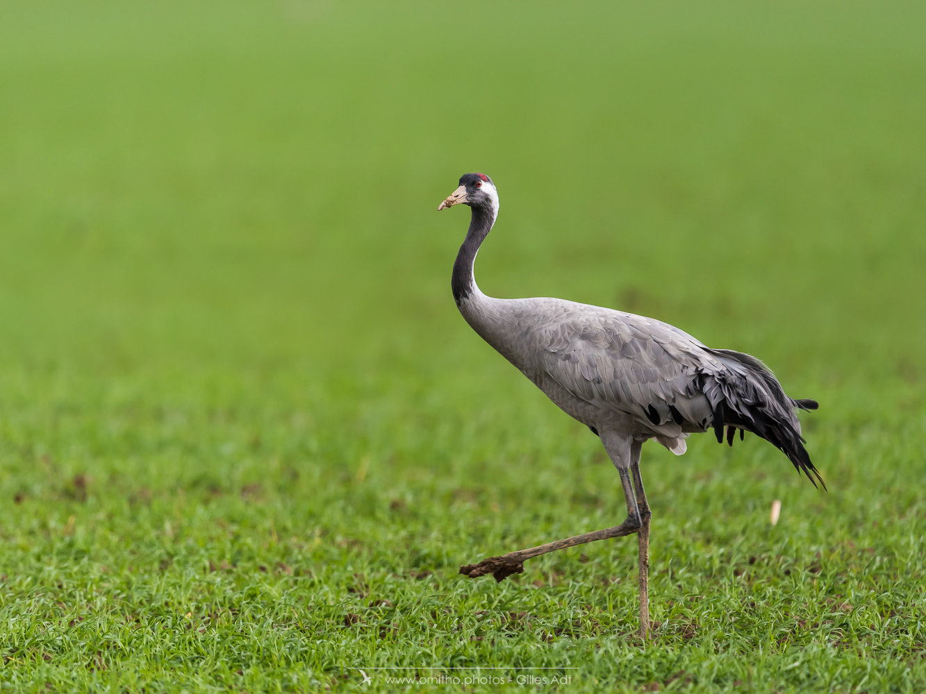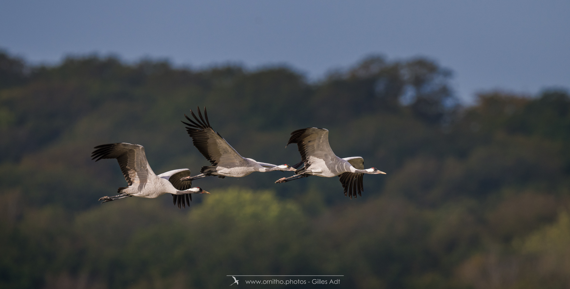 Le Grue cendrée (Grus grus) au plumage gris ardoisé à une tache rouge, morceau de peau nue au sommet de la calotte. La Grue cendrée mesure jusqu’à 2 mètres d’envergure .