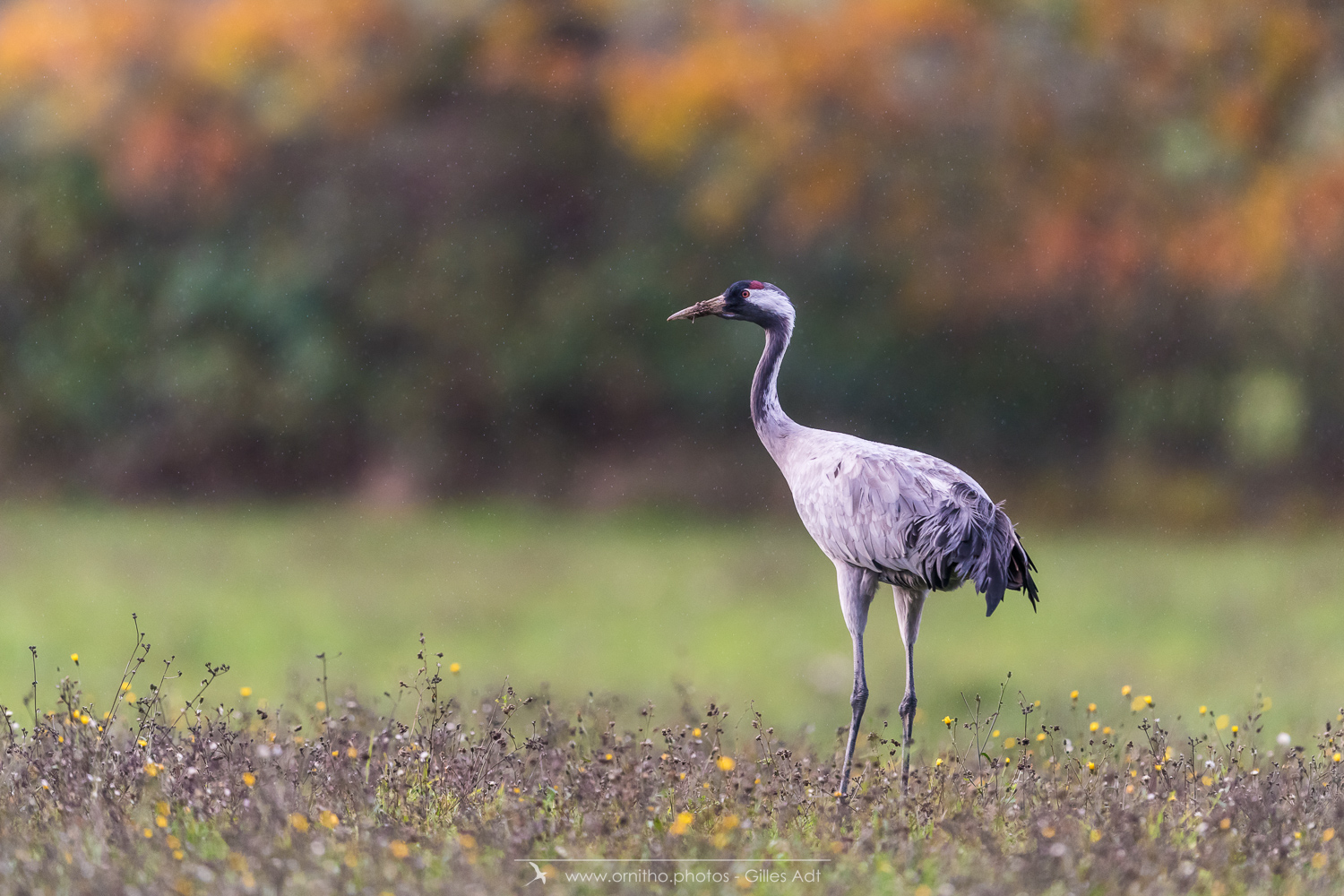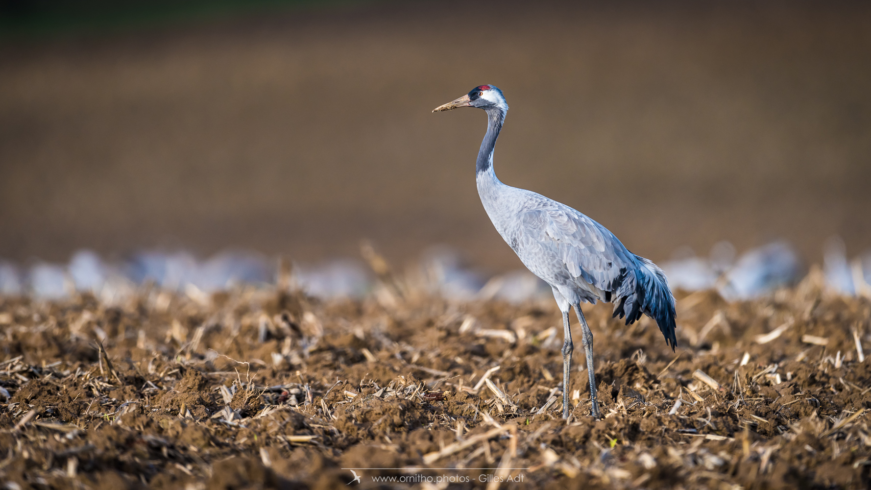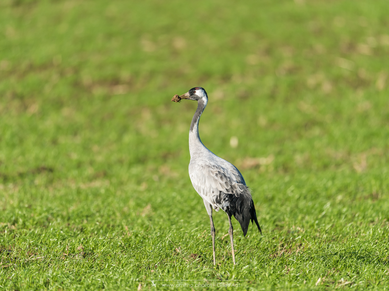 Le Grue cendrée (Grus grus) au plumage gris ardoisé à une tache rouge, morceau de peau nue au sommet de la calotte. La Grue cendrée mesure jusqu’à 2 mètres d’envergure .