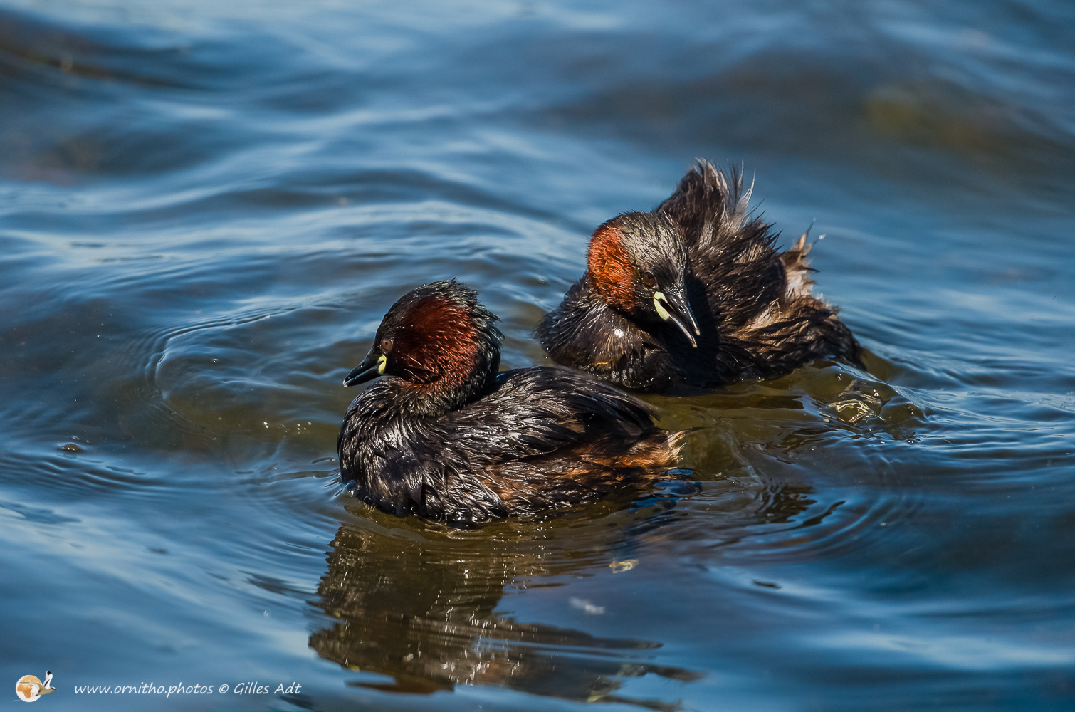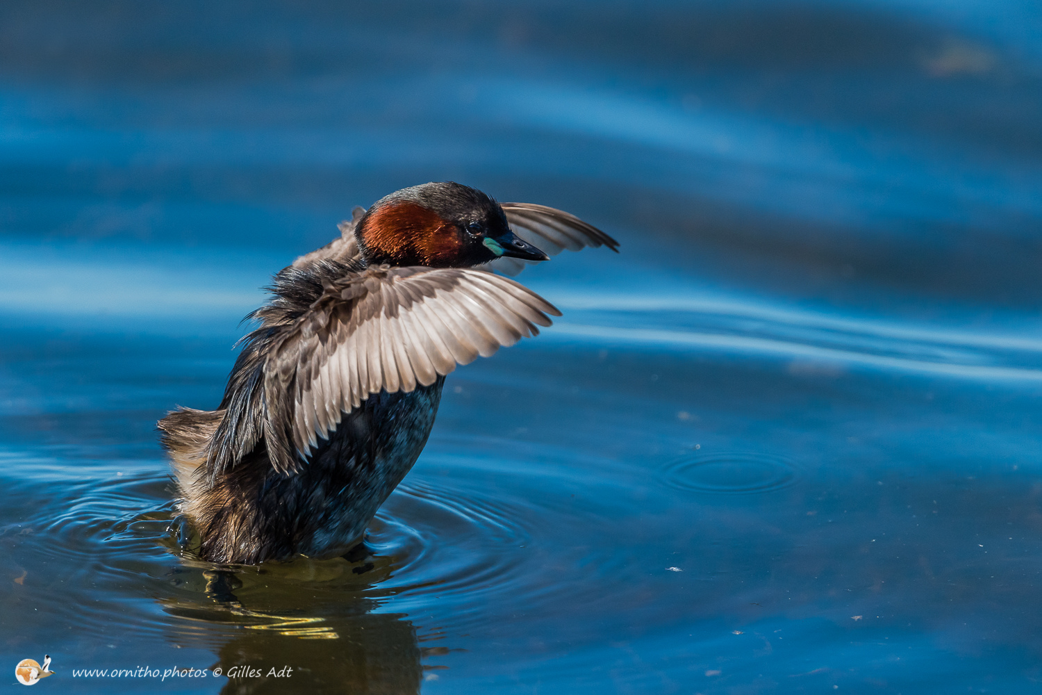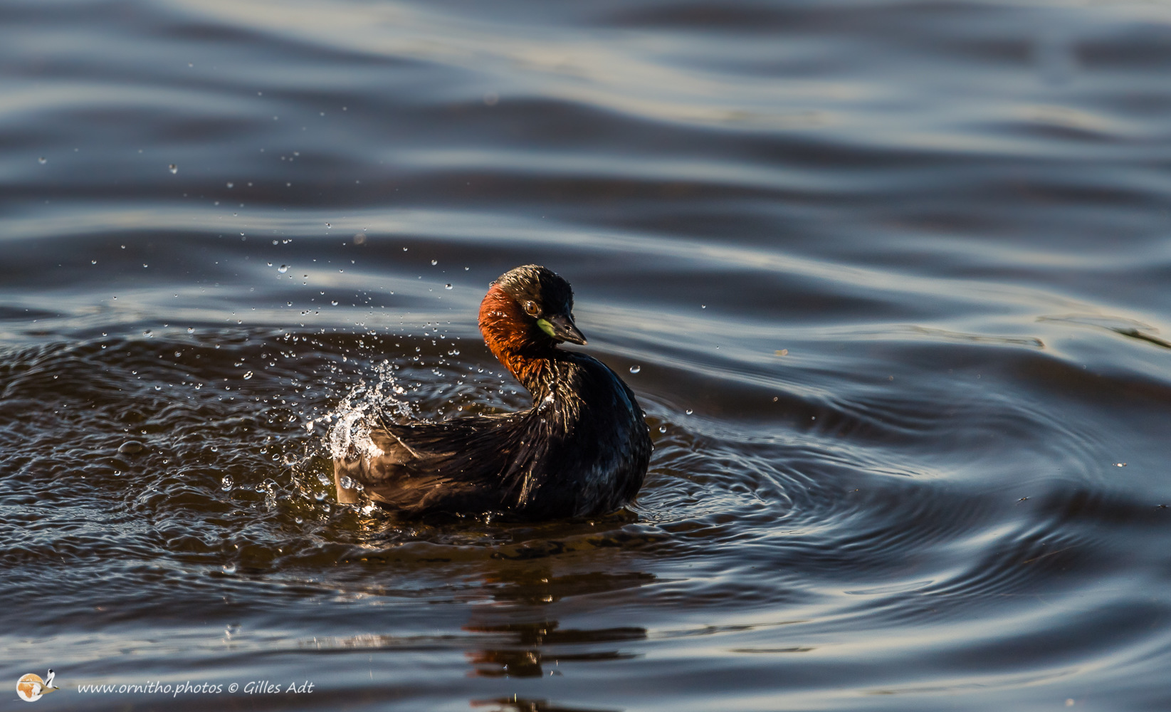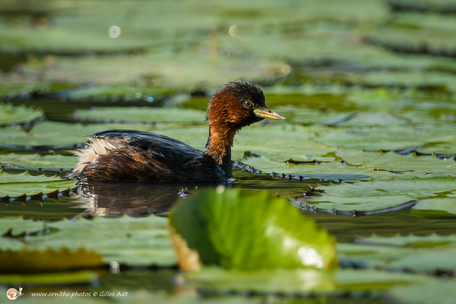 Le Grèbe castagneux (Tachybaptus ruficollis – Little Grebe) est le plus petit des 23 espèces de Grèbes. Immédiatement identifiable avec sa joue rousse en plumage nuptial et sa petite tête ronde. Il vit sur les étangs où il construit son nid constitué de roseaux ou branchages comme un radeau.