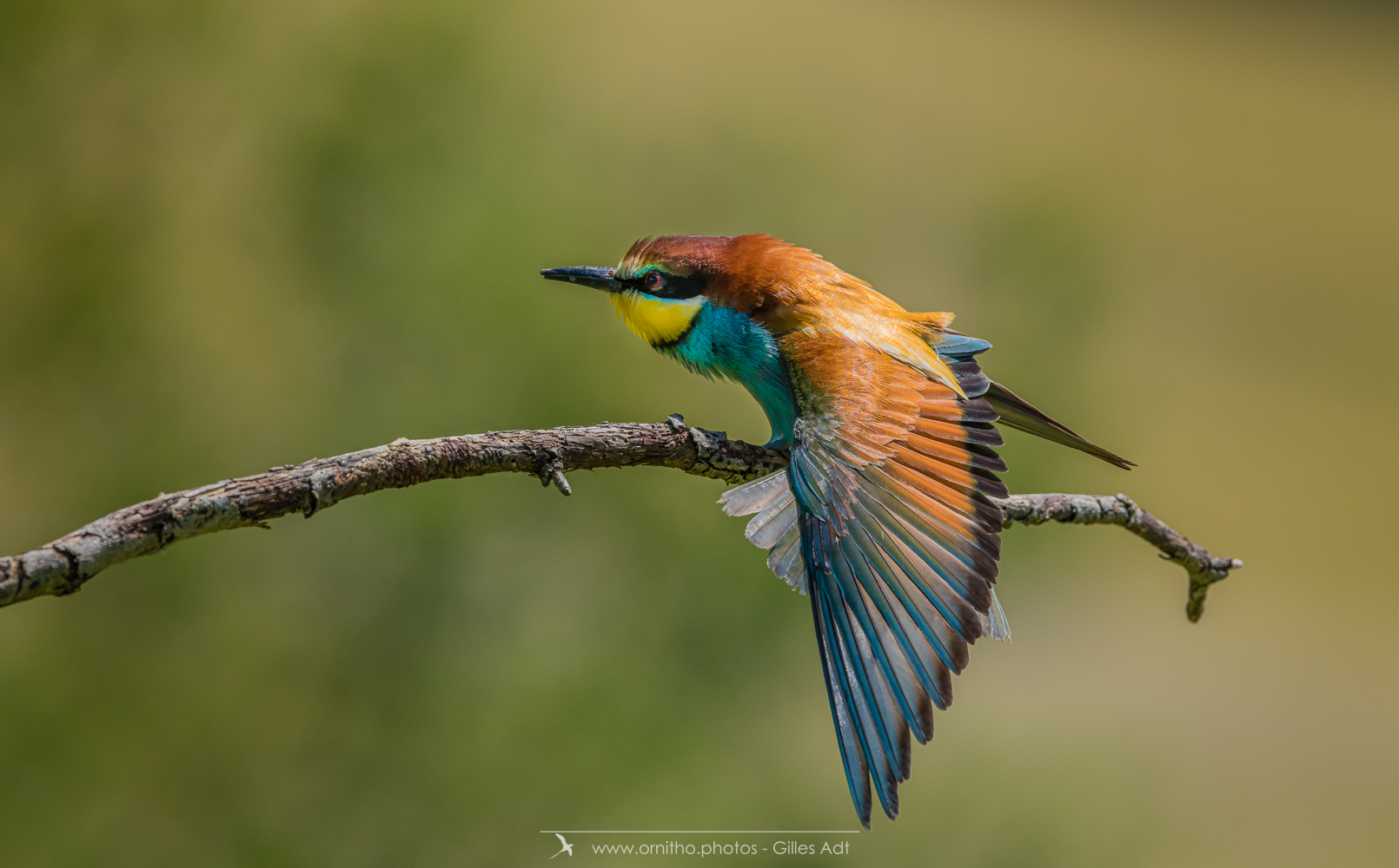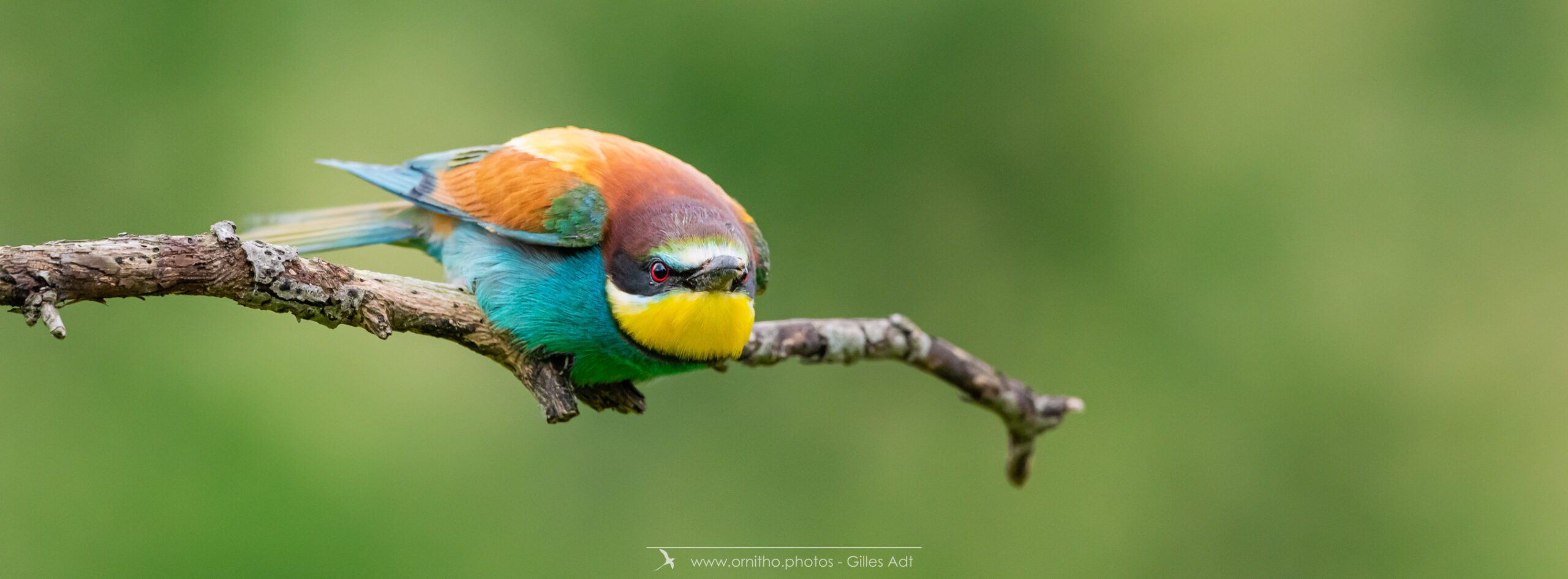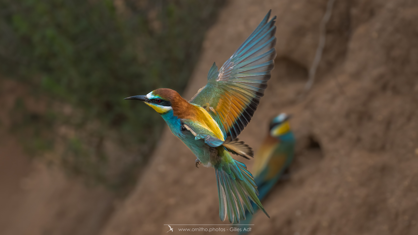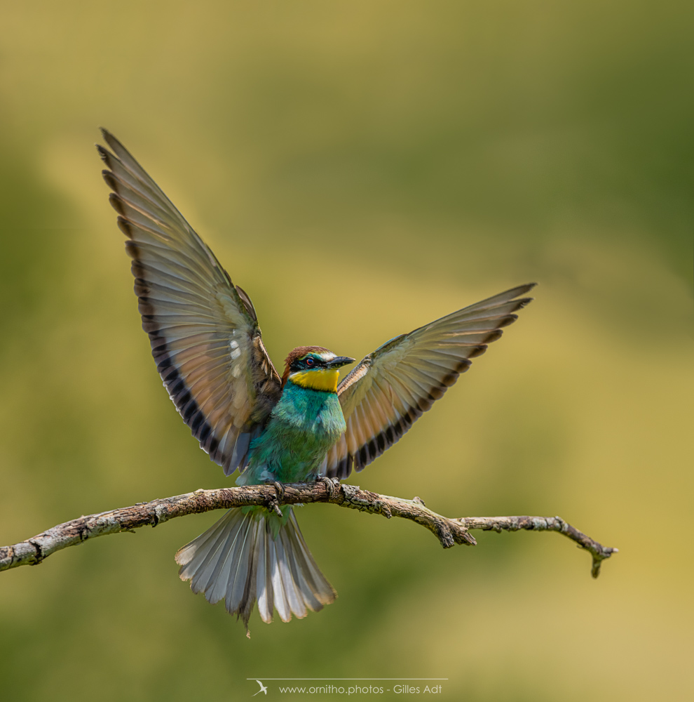 Surement un des plus colorés des oiseaux présents en France, le Guêpier d’Europe (Merops apiaster) est un migrateur qui arrive en France pour la reproduction à partir d’avril. Son bec peut être fortement usé par le creusement du terrier où il niche. A l’affût sur une point haut, il est un chasseur impressionnant au vol virevoltant.