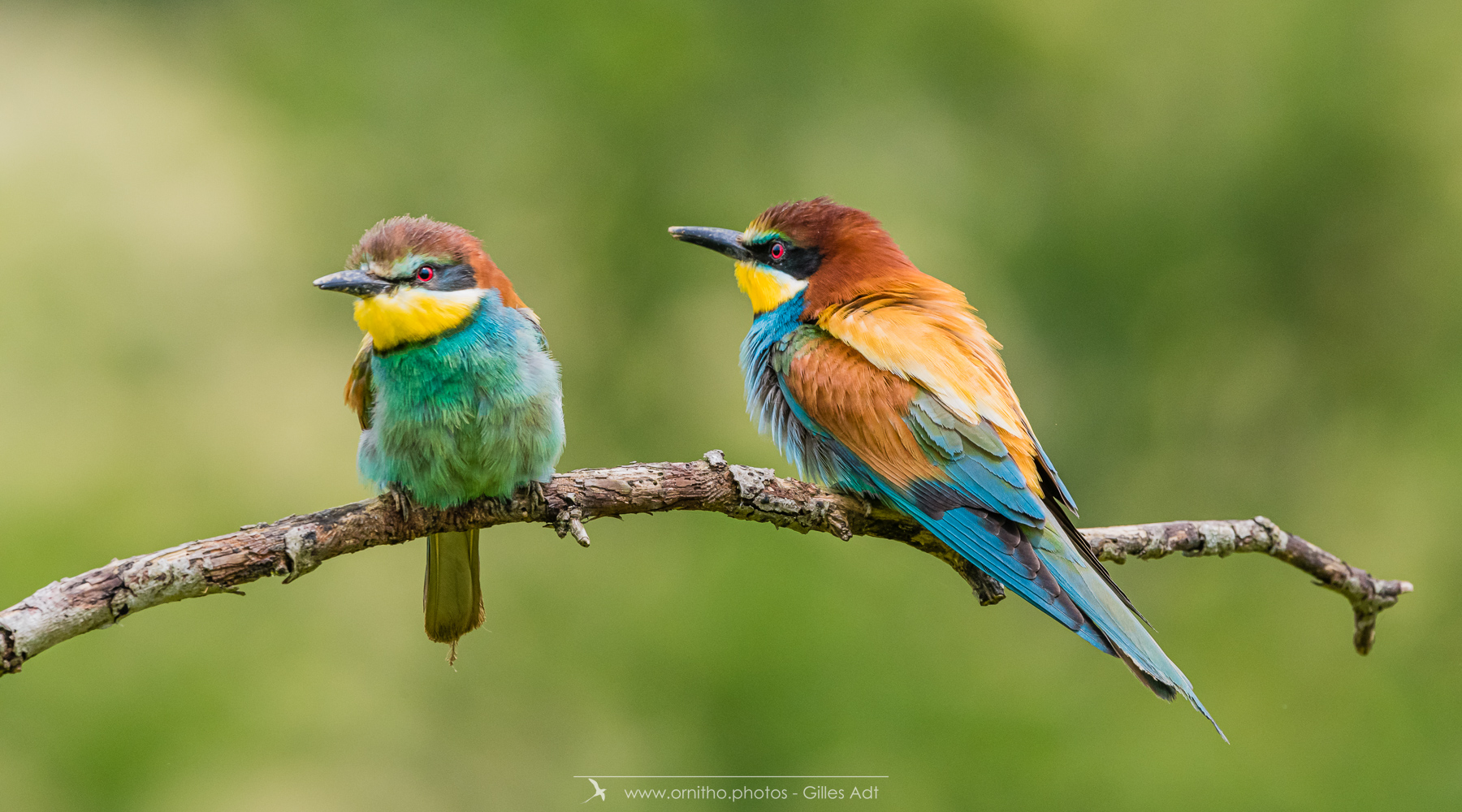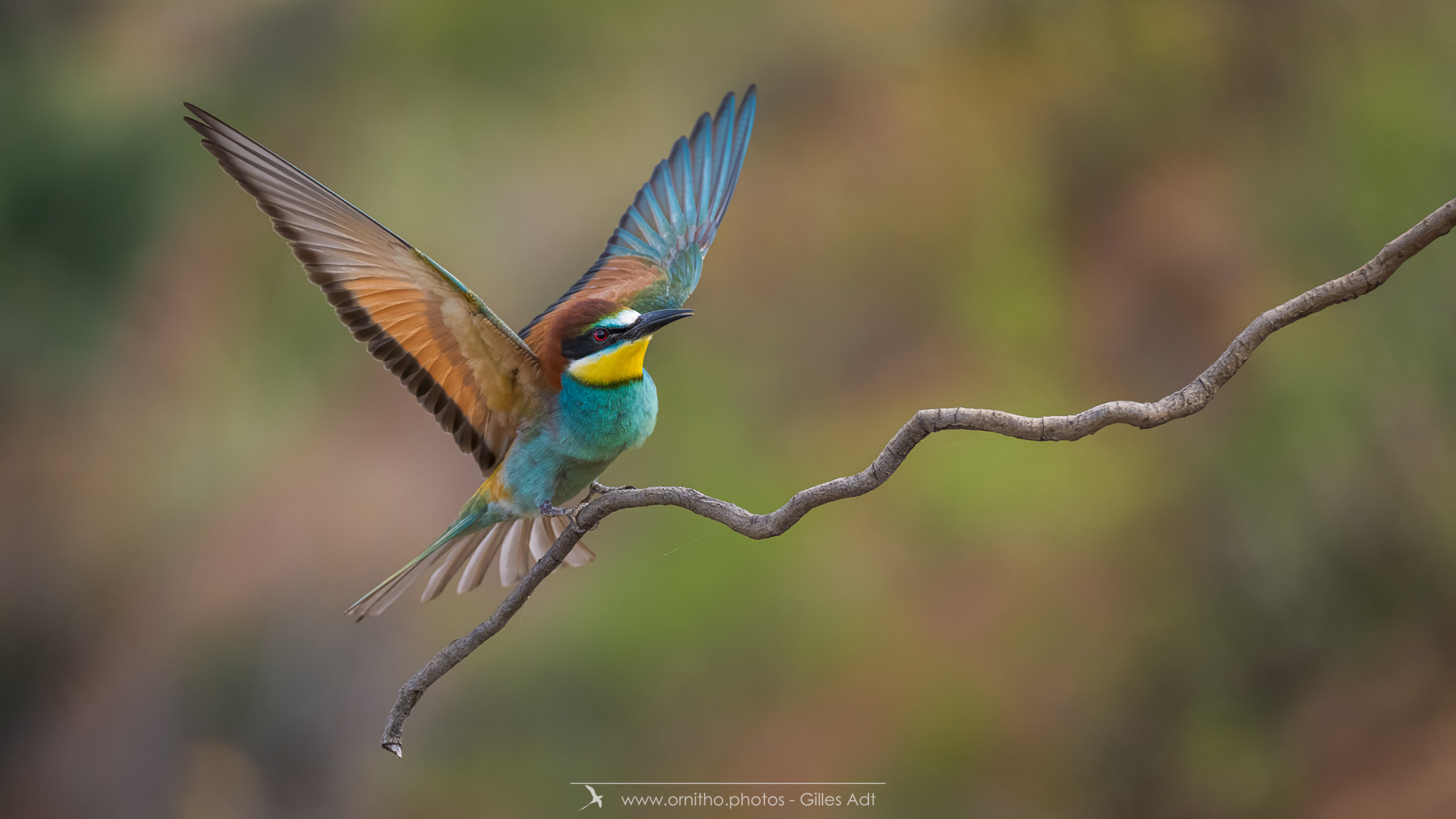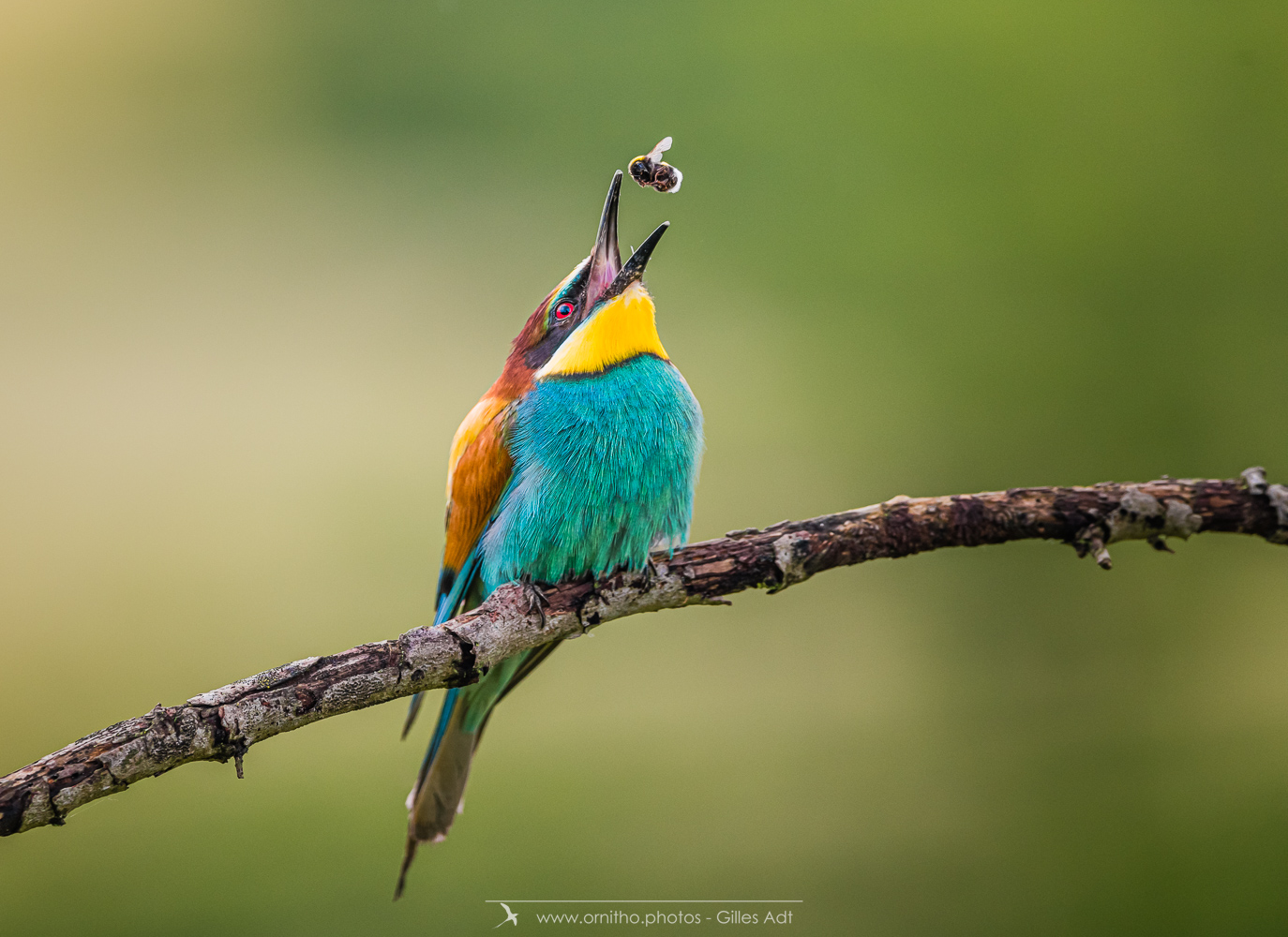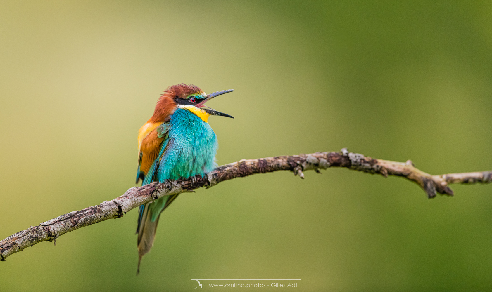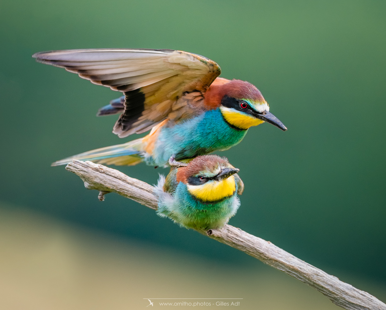 Surement un des plus colorés des oiseaux présents en France, le Guêpier d’Europe (Merops apiaster) est un migrateur qui arrive en France pour la reproduction à partir d’avril. Son bec peut être fortement usé par le creusement du terrier où il niche. A l’affût sur une point haut, il est un chasseur impressionnant au vol virevoltant.
