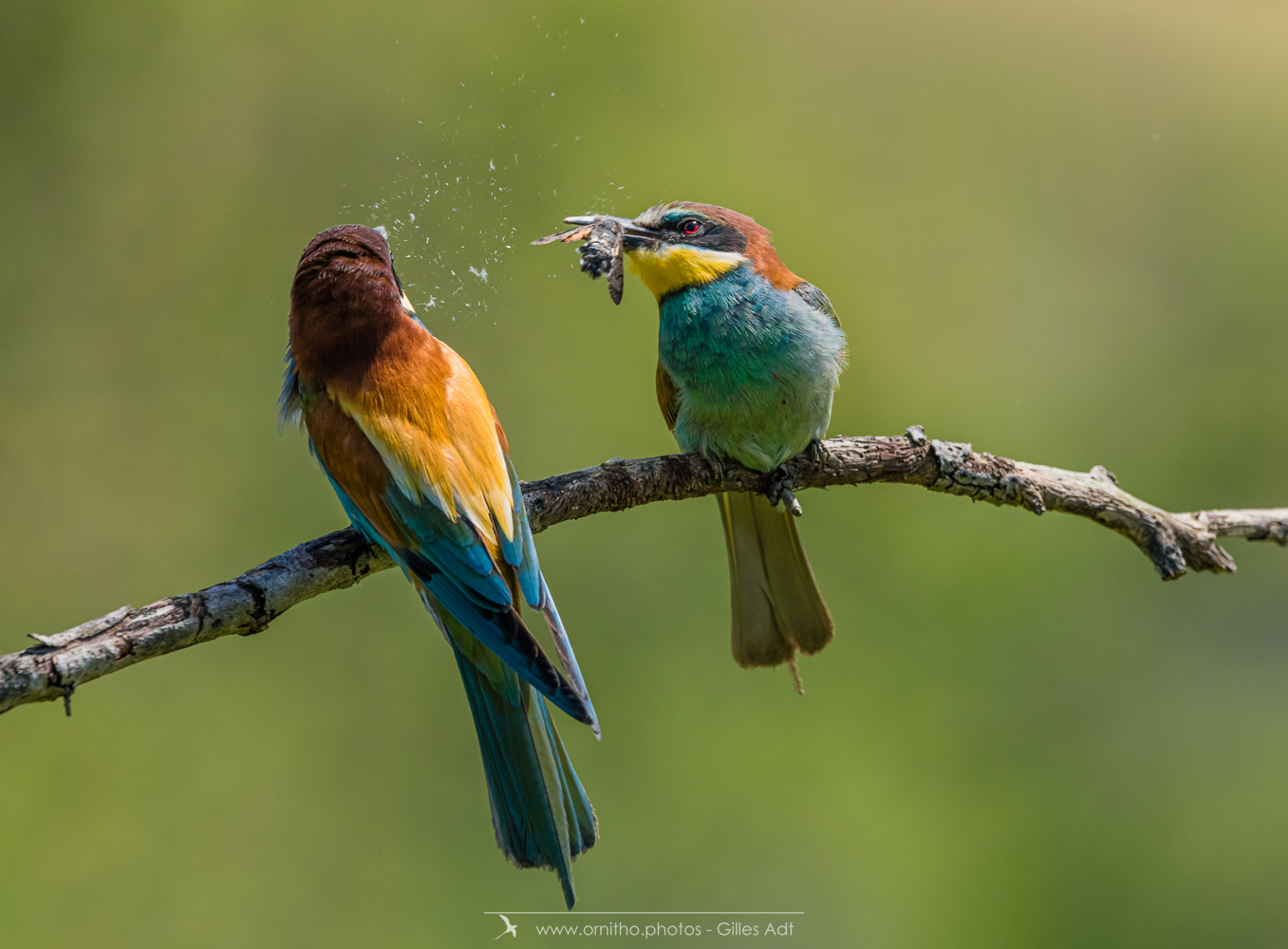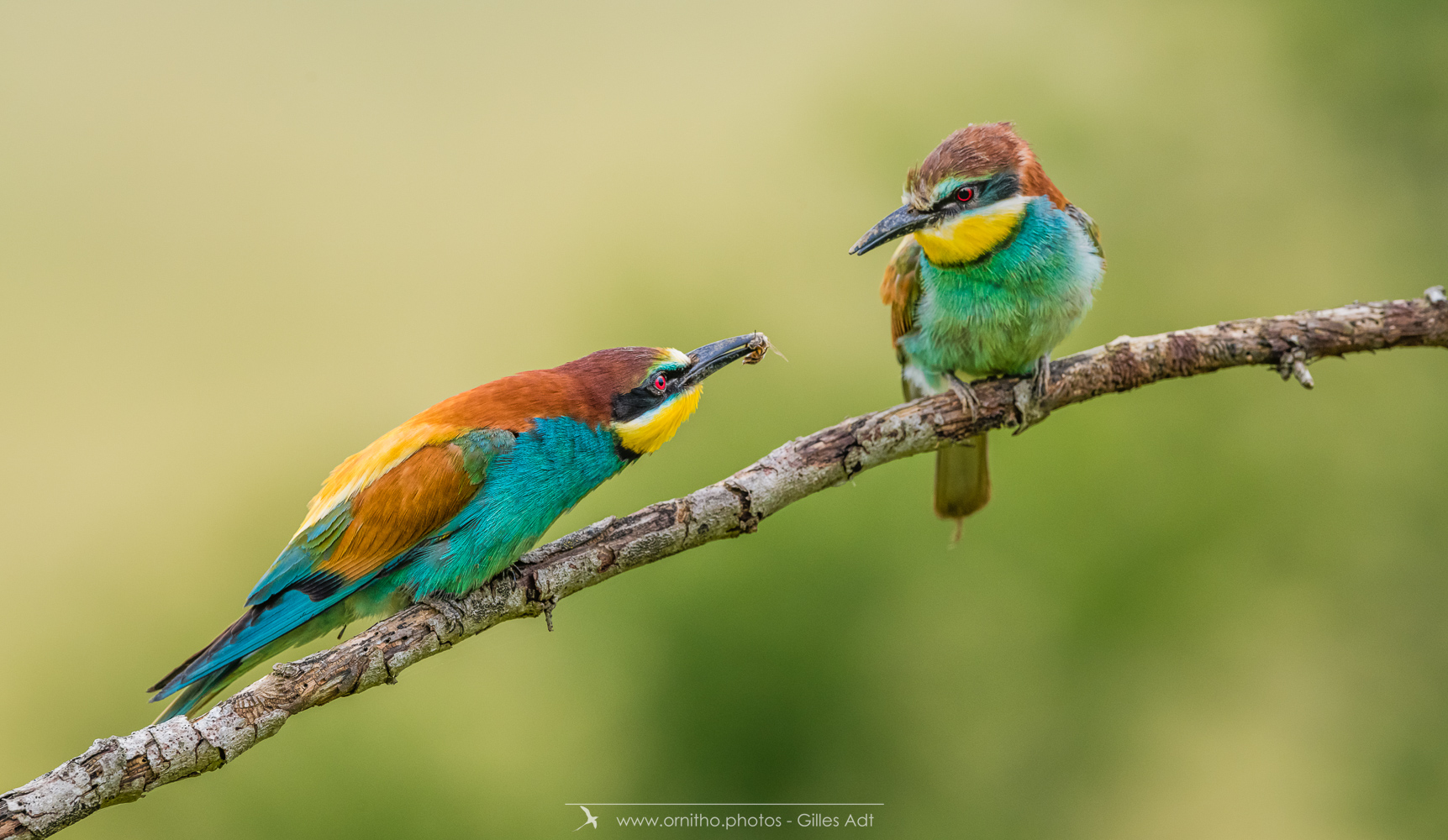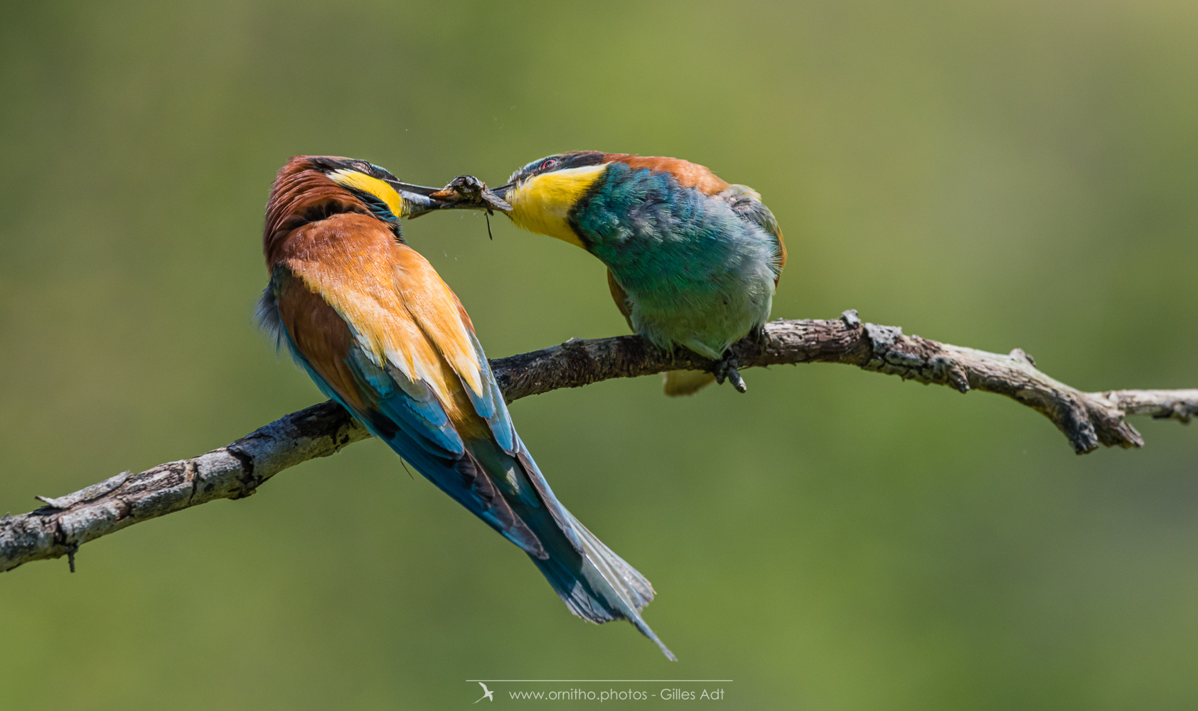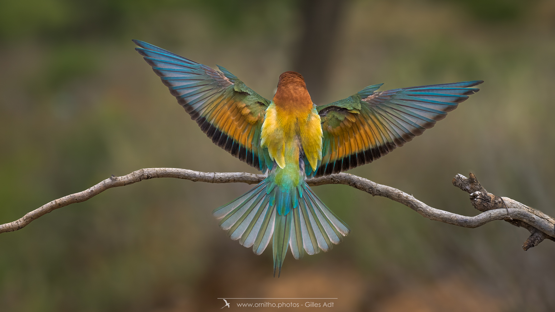 Surement un des plus colorés des oiseaux présents en France, le Guêpier d’Europe (Merops apiaster) est un migrateur qui arrive en France pour la reproduction à partir d’avril. Son bec peut être fortement usé par le creusement du terrier où il niche. A l’affût sur une point haut, il est un chasseur impressionnant au vol virevoltant.