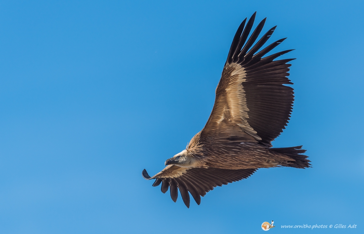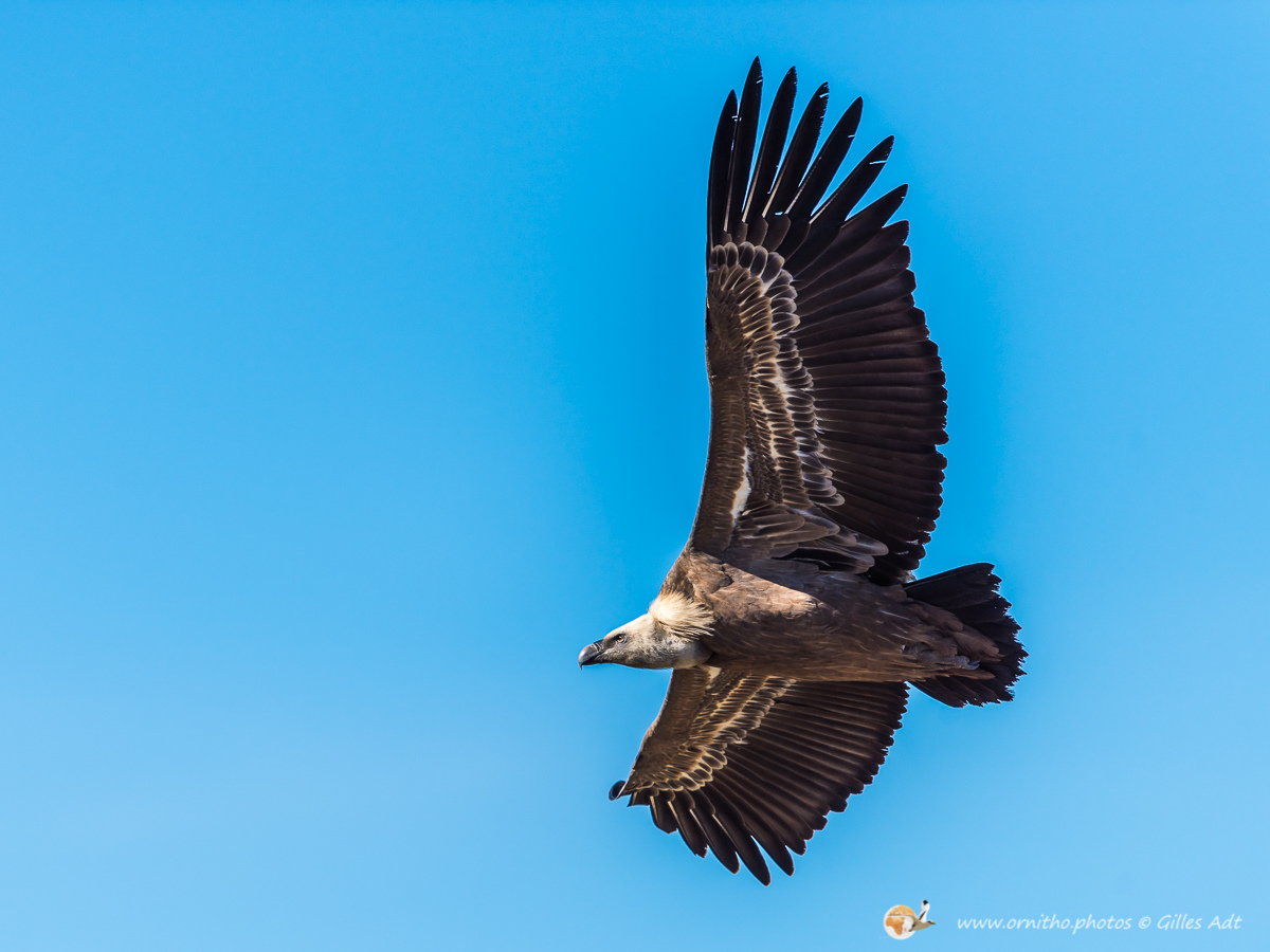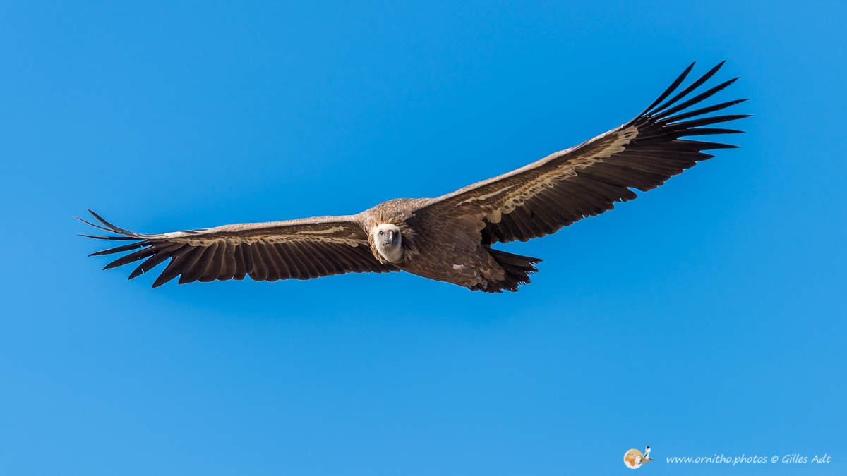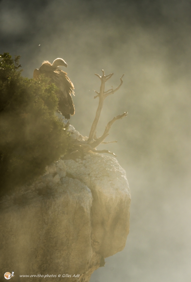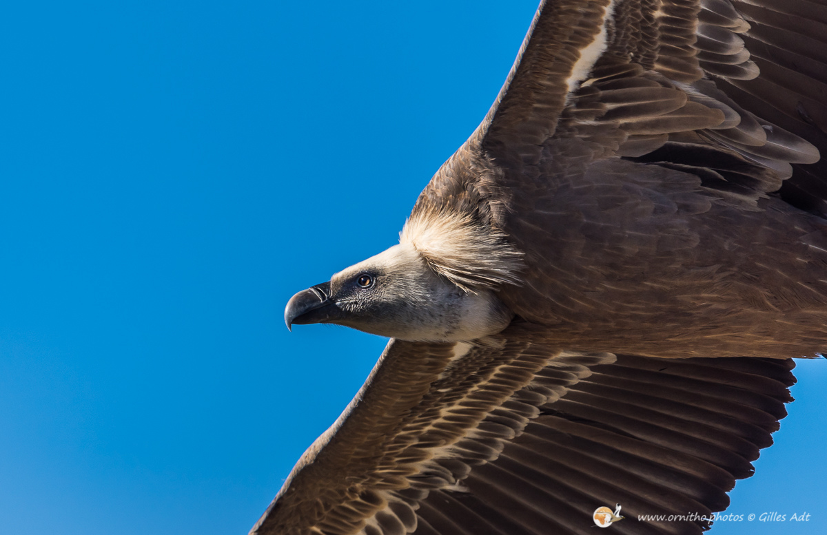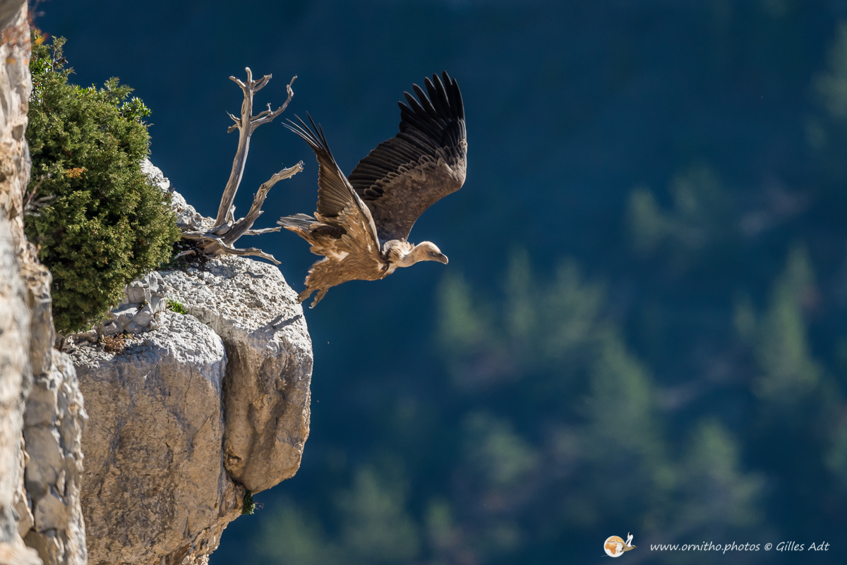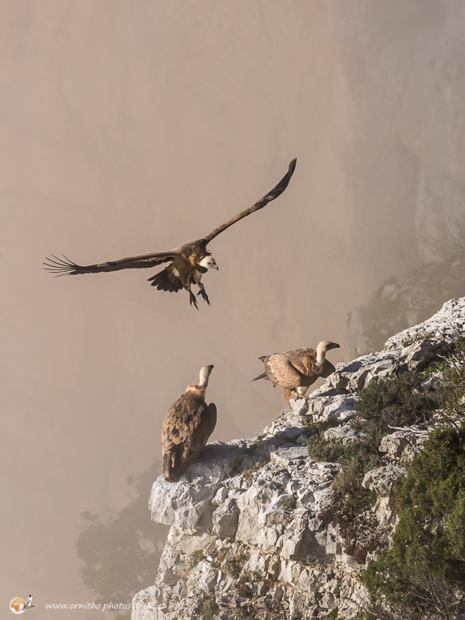 Le Vautour fauve (Gyps fulvus) fréquente les falaises au dénivelé important où il nidifie. D’une envergure maximum 2.80 mètres ce superbe planeur, reconnaissable au duvet blanc qui recouvre son crane, est un nécrophage (un éboueur naturel…). Le vautour fauve vit en colonie mais les couples se forment à vie.