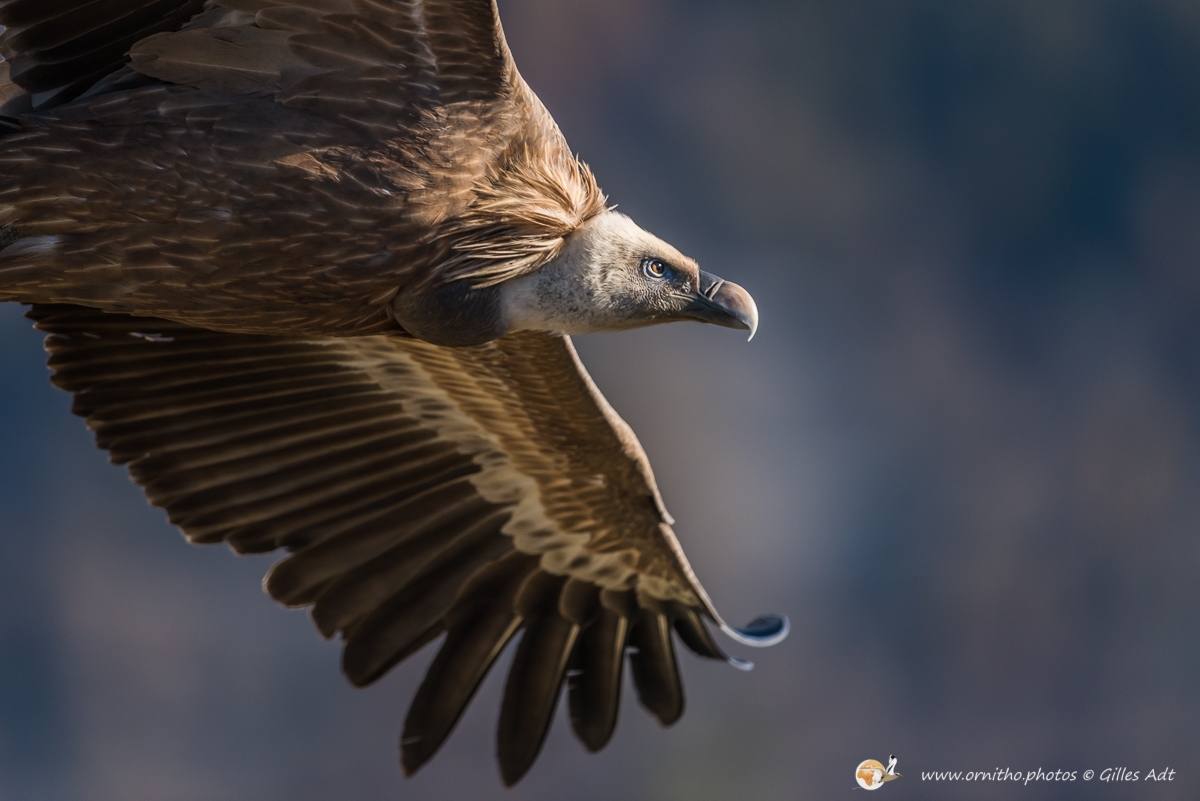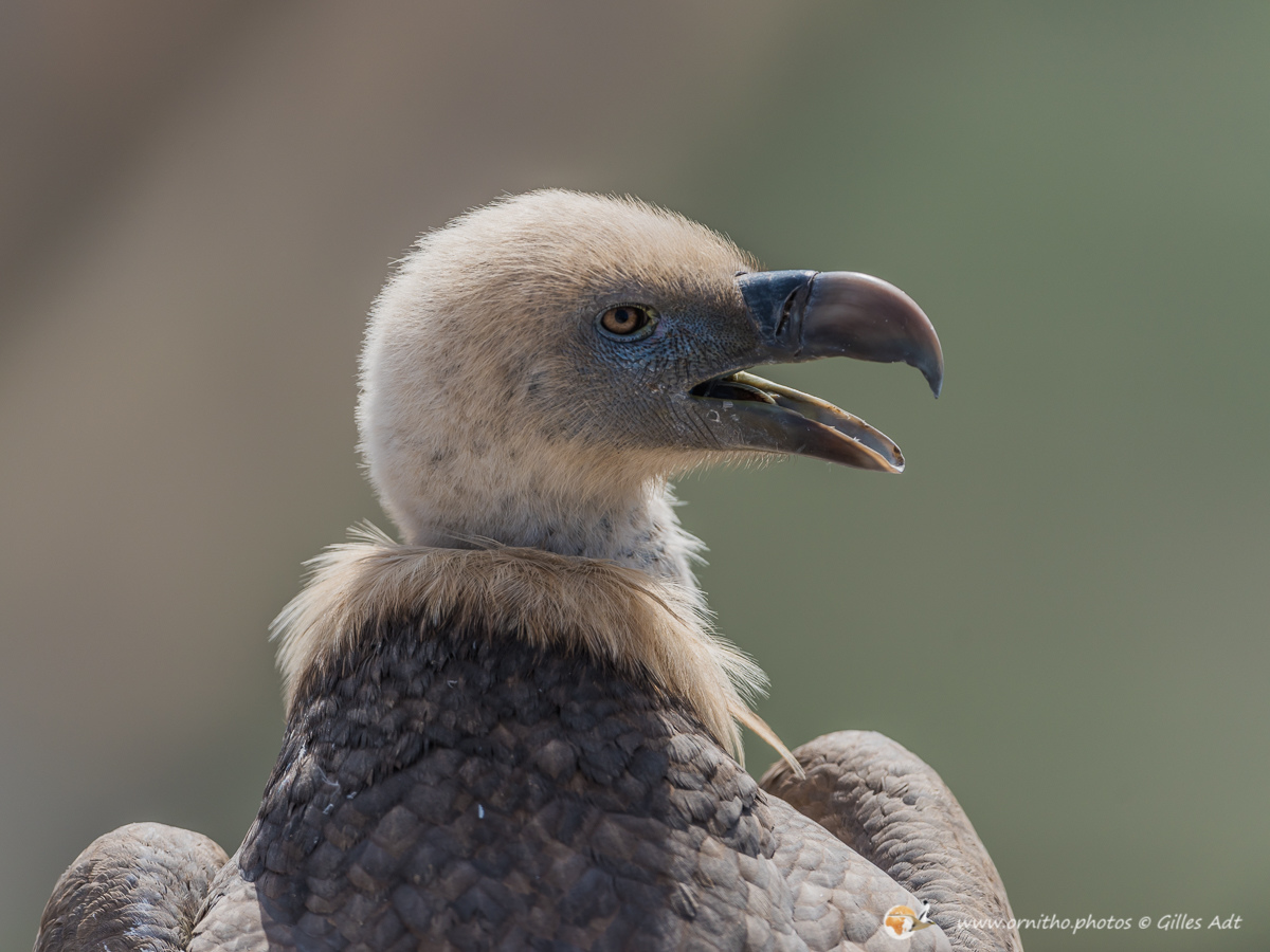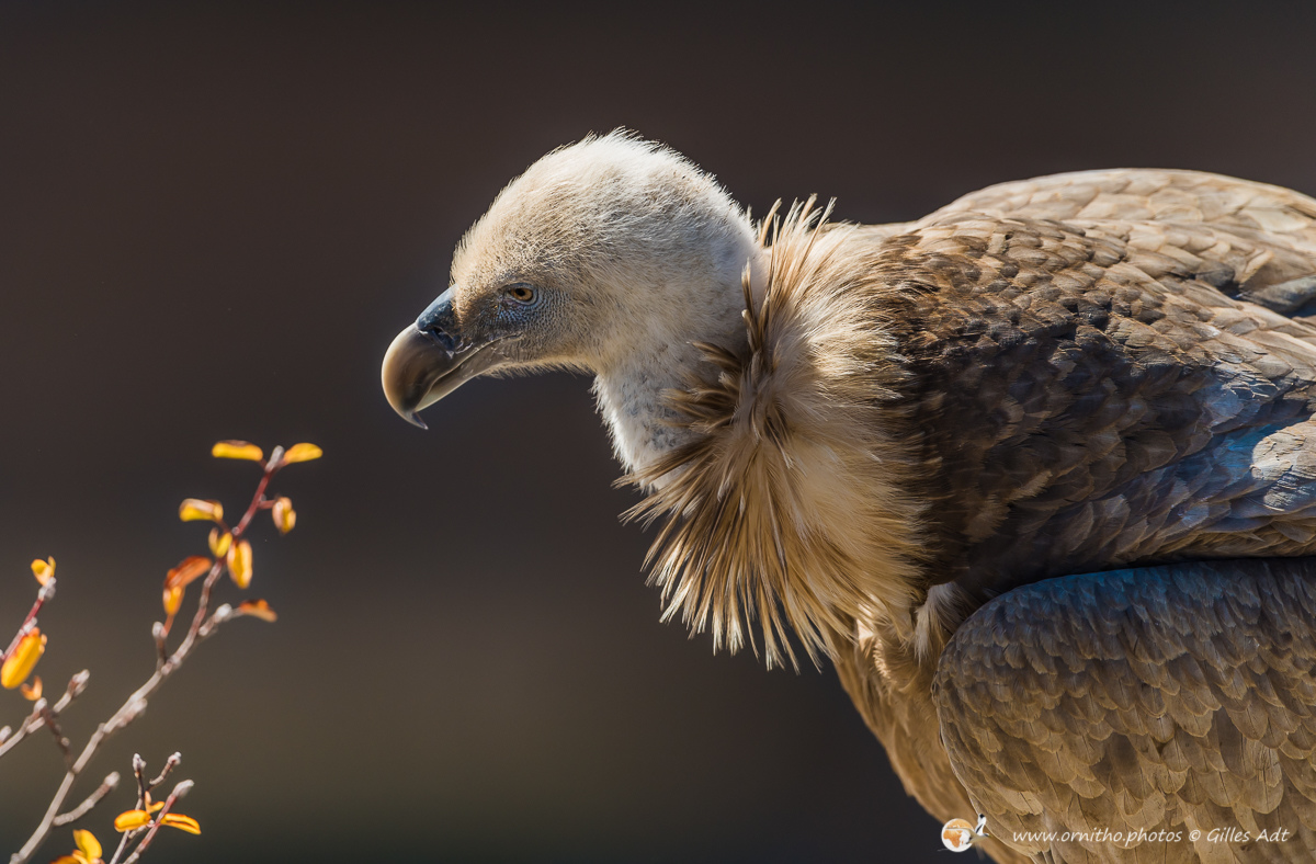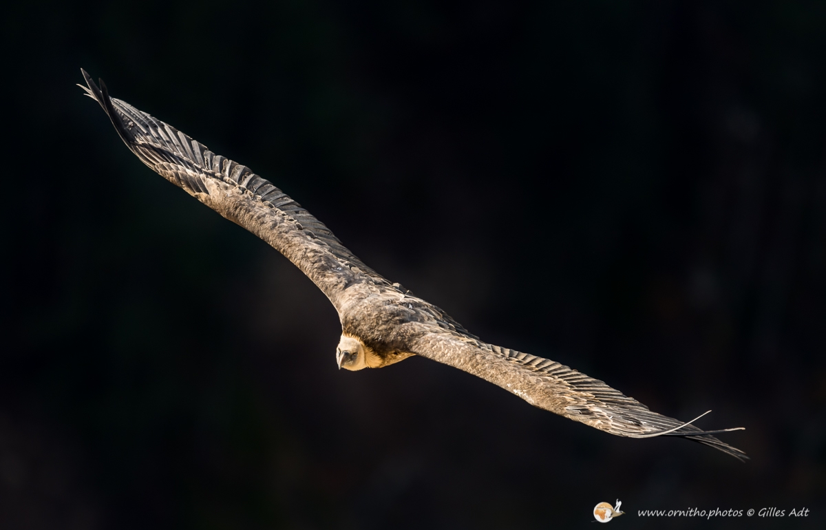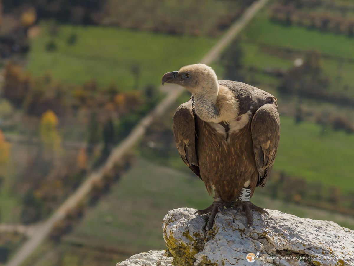 Le Vautour fauve (Gyps fulvus) fréquente les falaises au dénivelé important où il nidifie. D’une envergure maximum 2.80 mètres ce superbe planeur, reconnaissable au duvet blanc qui recouvre son crane, est un nécrophage (un éboueur naturel…). Le vautour fauve vit en colonie mais les couples se forment à vie.